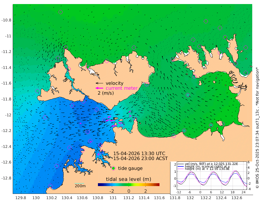152cm/s -102T +4cm/s rms + 6cm/s 51T. Darwin_C1 52m 110cm/s -89T +4cm/s rms + 7cm/s -161T. Darwin_CW1 22m 98cm/s -108T +4cm/s rms + 8cm/s 61T. Darwin_CW2 34m 67cm/s -134T +3cm/s rms + 9cm/s 98T. Darwin_CW3 22m 128cm/s -91T +5cm/s rms + 7cm/s 88T. Darwin_C3 56m 90cm/s -115T +2cm/s rms + 9cm/s -126T. Darwin_CTbW 22m 47cm/s -94T +1cm/s rms + 1cm/s -47T. DARBGF 30m 39cm/s -67T +4cm/s rms + 3cm/s 80T. NRSDAR 19m -13cm Goodrich Bank -200cm Point Jenny -200cm Native Point -209cm Fish Reef -223cm Tapa Bay -110cm Point Fawcett (Offshore) -237cm Burge Point -209cm Munkunuwa -186cm Beagle A -224cm Parsons Bank -237cm Fenton Patches -222cm Hancox Shoal Area -248cm Nightcliff -244cm Darwin -223cm Charles Point Patches -165cm Glyde Point -108cm Chambers Bay -92cm Point Stuart -134cm Cape Hotham -101cm Christine Reef -94cm West Alligator Head -73cm East Field Island -94cm Two Hills Bay -101cm Camp Point -214cm Medina Inlet South -95cm South Barlow Point -66cm St. Asaph Bay -20cm Cape Van Dieman -27cm Snake Bay -21cm Cache Point -36cm Point Jahleel (Off) -68cm Cape Don -35cm Port Essington -40cm Smith Point - West -34cm NW Peacock Island -20cm North Of Jones Shoal -8cm Peacock Island -47cm Point David -41cm D'urville Point -48cm Copeland Island -42cm One Tree Point
