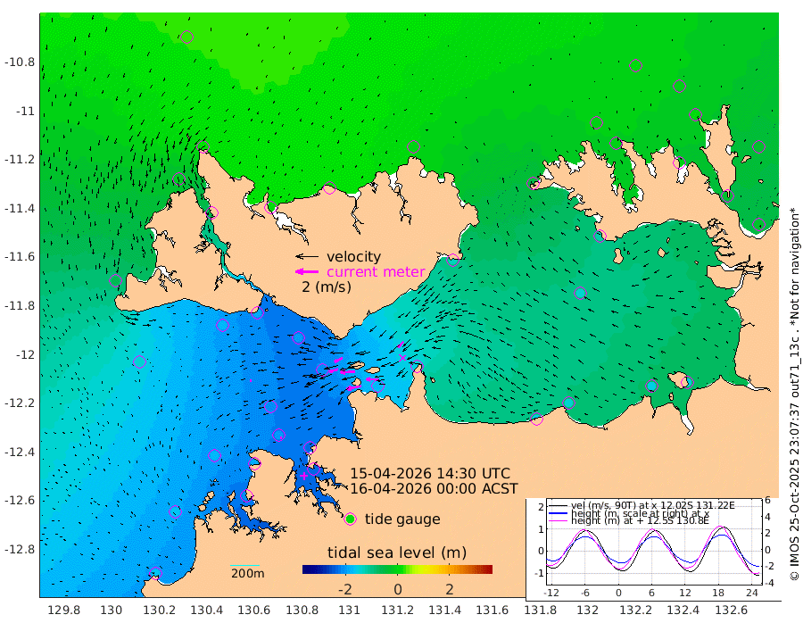 138cm/s -101T +4cm/s rms + 6cm/s 51T. Darwin_C1 52m 113cm/s -91T +4cm/s rms + 7cm/s -161T. Darwin_CW1 22m 82cm/s -107T +4cm/s rms + 8cm/s 61T. Darwin_CW2 34m 72cm/s -137T +3cm/s rms + 9cm/s 98T. Darwin_CW3 22m 127cm/s -91T +5cm/s rms + 7cm/s 88T. Darwin_C3 56m 77cm/s -115T +2cm/s rms + 9cm/s -126T. Darwin_CTbW 22m 17cm/s -112T +1cm/s rms + 1cm/s -47T. DARBGF 30m 11cm/s -103T +4cm/s rms + 3cm/s 80T. NRSDAR 19m 23cm Goodrich Bank -162cm Point Jenny -162cm Native Point -177cm Fish Reef -191cm Tapa Bay -64cm Point Fawcett (Offshore) -212cm Burge Point -175cm Munkunuwa -144cm Beagle A -202cm Parsons Bank -209cm Fenton Patches -206cm Hancox Shoal Area -227cm Nightcliff -233cm Darwin -201cm Charles Point Patches -176cm Glyde Point -150cm Chambers Bay -144cm Point Stuart -154cm Cape Hotham -136cm Christine Reef -156cm West Alligator Head -152cm East Field Island -123cm Two Hills Bay -129cm Camp Point -186cm Medina Inlet South -51cm South Barlow Point -21cm St. Asaph Bay 21cm Cape Van Dieman 11cm Snake Bay 16cm Cache Point -7cm Point Jahleel (Off) -54cm Cape Don -7cm Port Essington -8cm Smith Point - West -5cm NW Peacock Island 9cm North Of Jones Shoal 1cm Peacock Island -27cm Point David -10cm D'urville Point -30cm Copeland Island -24cm One Tree Point
