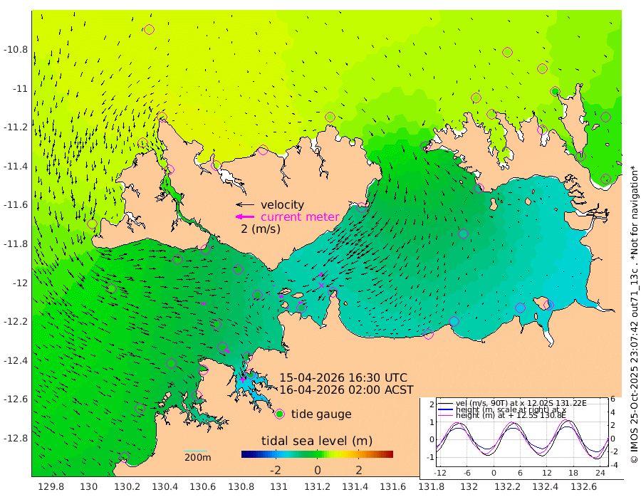 21cm/s -101T +4cm/s rms + 6cm/s 51T. Darwin_C1 52m 39cm/s -92T +4cm/s rms + 7cm/s -161T. Darwin_CW1 22m 10cm/s -107T +4cm/s rms + 8cm/s 61T. Darwin_CW2 34m 46cm/s -143T +3cm/s rms + 9cm/s 98T. Darwin_CW3 22m 46cm/s -89T +5cm/s rms + 7cm/s 88T. Darwin_C3 56m 4cm/s 46T +2cm/s rms + 9cm/s -126T. Darwin_CTbW 22m 52cm/s 98T +1cm/s rms + 1cm/s -47T. DARBGF 30m 58cm/s 128T +4cm/s rms + 3cm/s 80T. NRSDAR 19m 69cm Goodrich Bank 17cm Point Jenny 17cm Native Point -2cm Fish Reef -3cm Tapa Bay 60cm Point Fawcett (Offshore) -25cm Burge Point 5cm Munkunuwa 24cm Beagle A -25cm Parsons Bank -21cm Fenton Patches -38cm Hancox Shoal Area -38cm Nightcliff -54cm Darwin -24cm Charles Point Patches -77cm Glyde Point -121cm Chambers Bay -142cm Point Stuart -87cm Cape Hotham -107cm Christine Reef -163cm West Alligator Head -193cm East Field Island -92cm Two Hills Bay -92cm Camp Point -11cm Medina Inlet South 61cm South Barlow Point 70cm St. Asaph Bay 76cm Cape Van Dieman 67cm Snake Bay 69cm Cache Point 46cm Point Jahleel (Off) 7cm Cape Don 47cm Port Essington 52cm Smith Point - West 49cm NW Peacock Island 52cm North Of Jones Shoal 18cm Peacock Island 28cm Point David 51cm D'urville Point 24cm Copeland Island 26cm One Tree Point