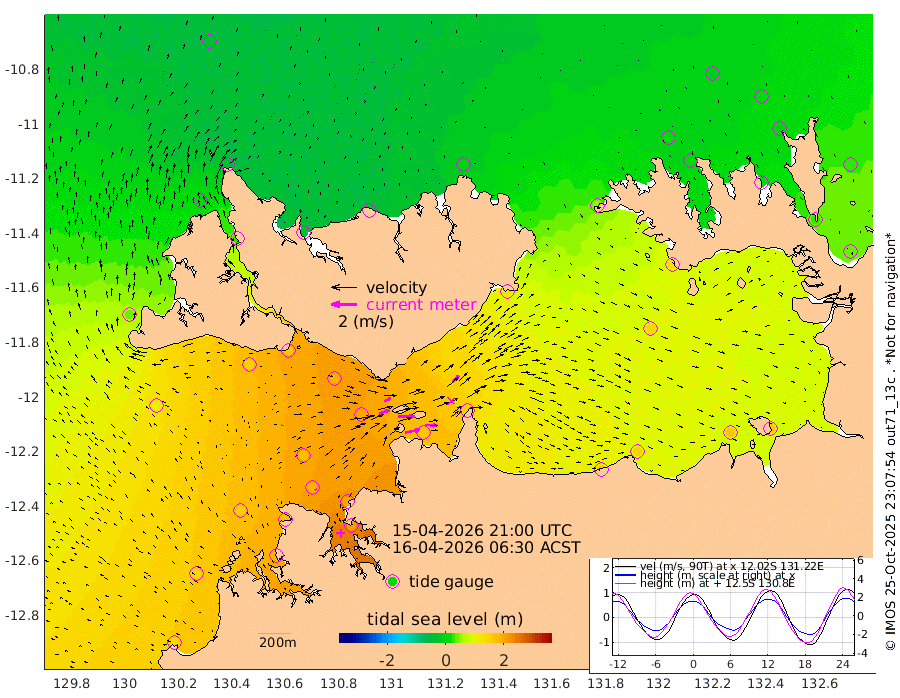 116cm/s 79T +4cm/s rms + 6cm/s 51T. Darwin_C1 52m 91cm/s 93T +4cm/s rms + 7cm/s -161T. Darwin_CW1 22m 82cm/s 71T +4cm/s rms + 8cm/s 61T. Darwin_CW2 34m 75cm/s 43T +3cm/s rms + 9cm/s 98T. Darwin_CW3 22m 128cm/s 89T +5cm/s rms + 7cm/s 88T. Darwin_C3 56m 55cm/s 65T +2cm/s rms + 9cm/s -126T. Darwin_CTbW 22m 8cm/s 19T +1cm/s rms + 1cm/s -47T. DARBGF 30m 11cm/s -24T +4cm/s rms + 3cm/s 80T. NRSDAR 19m -36cm Goodrich Bank 140cm Point Jenny 138cm Native Point 150cm Fish Reef 172cm Tapa Bay 43cm Point Fawcett (Offshore) 182cm Burge Point 147cm Munkunuwa 112cm Beagle A 182cm Parsons Bank 179cm Fenton Patches 196cm Hancox Shoal Area 202cm Nightcliff 212cm Darwin 185cm Charles Point Patches 168cm Glyde Point 163cm Chambers Bay 154cm Point Stuart 151cm Cape Hotham 144cm Christine Reef 168cm West Alligator Head 169cm East Field Island 125cm Two Hills Bay 132cm Camp Point 160cm Medina Inlet South 26cm South Barlow Point 2cm St. Asaph Bay -35cm Cape Van Dieman -30cm Snake Bay -28cm Cache Point -4cm Point Jahleel (Off) 48cm Cape Don 3cm Port Essington 4cm Smith Point - West 2cm NW Peacock Island -15cm North Of Jones Shoal -3cm Peacock Island 32cm Point David 8cm D'urville Point 38cm Copeland Island 26cm One Tree Point