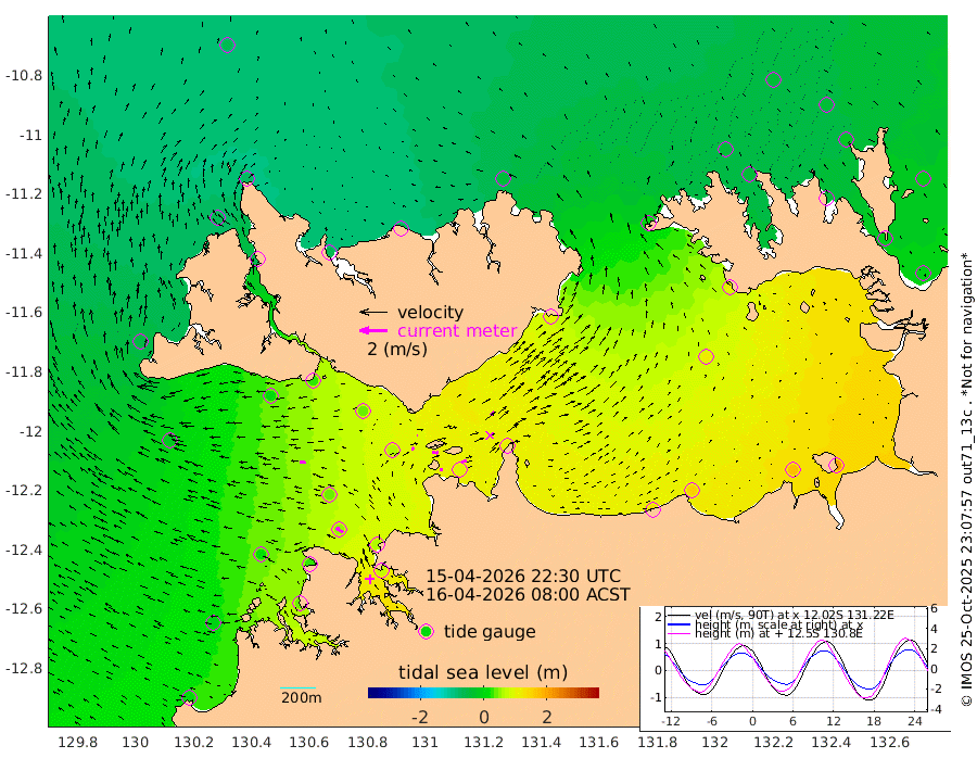 21cm/s 84T +4cm/s rms + 6cm/s 51T. Darwin_C1 52m 35cm/s 89T +4cm/s rms + 7cm/s -161T. Darwin_CW1 22m 19cm/s 67T +4cm/s rms + 8cm/s 61T. Darwin_CW2 34m 33cm/s 38T +3cm/s rms + 9cm/s 98T. Darwin_CW3 22m 46cm/s 91T +5cm/s rms + 7cm/s 88T. Darwin_C3 56m 4cm/s 74T +2cm/s rms + 9cm/s -126T. Darwin_CTbW 22m 46cm/s -81T +1cm/s rms + 1cm/s -47T. DARBGF 30m 60cm/s -53T +4cm/s rms + 3cm/s 80T. NRSDAR 19m -66cm Goodrich Bank 2cm Point Jenny 0cm Native Point 15cm Fish Reef 26cm Tapa Bay -48cm Point Fawcett (Offshore) 36cm Burge Point 5cm Munkunuwa -13cm Beagle A 42cm Parsons Bank 36cm Fenton Patches 64cm Hancox Shoal Area 57cm Nightcliff 71cm Darwin 46cm Charles Point Patches 91cm Glyde Point 141cm Chambers Bay 154cm Point Stuart 102cm Cape Hotham 123cm Christine Reef 176cm West Alligator Head 204cm East Field Island 104cm Two Hills Bay 104cm Camp Point 23cm Medina Inlet South -57cm South Barlow Point -64cm St. Asaph Bay -72cm Cape Van Dieman -67cm Snake Bay -62cm Cache Point -39cm Point Jahleel (Off) 3cm Cape Don -36cm Port Essington -38cm Smith Point - West -35cm NW Peacock Island -43cm North Of Jones Shoal -14cm Peacock Island -8cm Point David -35cm D'urville Point -2cm Copeland Island -10cm One Tree Point