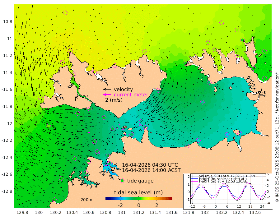 24cm/s -101T +4cm/s rms + 6cm/s 51T. Darwin_C1 52m 36cm/s -94T +4cm/s rms + 7cm/s -161T. Darwin_CW1 22m 15cm/s -104T +4cm/s rms + 8cm/s 61T. Darwin_CW2 34m 48cm/s -141T +3cm/s rms + 9cm/s 98T. Darwin_CW3 22m 52cm/s -90T +5cm/s rms + 7cm/s 88T. Darwin_C3 56m 3cm/s 54T +2cm/s rms + 9cm/s -126T. Darwin_CTbW 22m 50cm/s 99T +1cm/s rms + 1cm/s -47T. DARBGF 30m 56cm/s 130T +4cm/s rms + 3cm/s 80T. NRSDAR 19m 84cm Goodrich Bank 8cm Point Jenny 12cm Native Point 1cm Fish Reef -14cm Tapa Bay 66cm Point Fawcett (Offshore) -23cm Burge Point 2cm Munkunuwa 37cm Beagle A -33cm Parsons Bank -15cm Fenton Patches -53cm Hancox Shoal Area -41cm Nightcliff -58cm Darwin -34cm Charles Point Patches -76cm Glyde Point -131cm Chambers Bay -138cm Point Stuart -83cm Cape Hotham -112cm Christine Reef -158cm West Alligator Head -183cm East Field Island -87cm Two Hills Bay -91cm Camp Point -11cm Medina Inlet South 73cm South Barlow Point 82cm St. Asaph Bay 89cm Cape Van Dieman 87cm Snake Bay 81cm Cache Point 58cm Point Jahleel (Off) 8cm Cape Don 47cm Port Essington 53cm Smith Point - West 49cm NW Peacock Island 59cm North Of Jones Shoal 19cm Peacock Island 19cm Point David 49cm D'urville Point 12cm Copeland Island 21cm One Tree Point