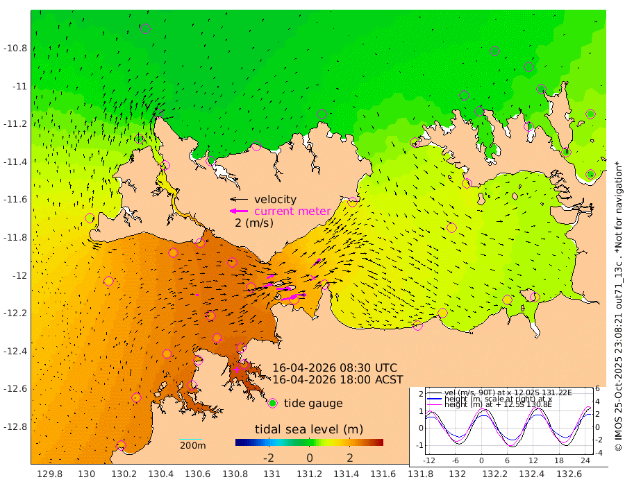 170cm/s 78T +4cm/s rms + 6cm/s 51T. Darwin_C1 52m 128cm/s 92T +4cm/s rms + 7cm/s -161T. Darwin_CW1 22m 105cm/s 73T +4cm/s rms + 8cm/s 61T. Darwin_CW2 34m 100cm/s 44T +3cm/s rms + 9cm/s 98T. Darwin_CW3 22m 162cm/s 89T +5cm/s rms + 7cm/s 88T. Darwin_C3 56m 84cm/s 66T +2cm/s rms + 9cm/s -126T. Darwin_CTbW 22m 25cm/s 74T +1cm/s rms + 1cm/s -47T. DARBGF 30m 21cm/s 96T +4cm/s rms + 3cm/s 80T. NRSDAR 19m -24cm Goodrich Bank 180cm Point Jenny 181cm Native Point 192cm Fish Reef 209cm Tapa Bay 70cm Point Fawcett (Offshore) 235cm Burge Point 202cm Munkunuwa 153cm Beagle A 227cm Parsons Bank 223cm Fenton Patches 221cm Hancox Shoal Area 241cm Nightcliff 253cm Darwin 219cm Charles Point Patches 179cm Glyde Point 133cm Chambers Bay 124cm Point Stuart 146cm Cape Hotham 123cm Christine Reef 132cm West Alligator Head 118cm East Field Island 110cm Two Hills Bay 120cm Camp Point 208cm Medina Inlet South 62cm South Barlow Point 24cm St. Asaph Bay -19cm Cape Van Dieman -9cm Snake Bay -19cm Cache Point 4cm Point Jahleel (Off) 57cm Cape Don 11cm Port Essington 9cm Smith Point - West 6cm NW Peacock Island -12cm North Of Jones Shoal -2cm Peacock Island 32cm Point David 13cm D'urville Point 34cm Copeland Island 28cm One Tree Point