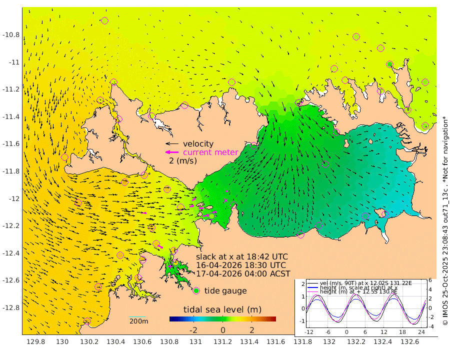 99cm/s 78T +4cm/s rms + 6cm/s 51T. Darwin_C1 52m 64cm/s 85T +4cm/s rms + 7cm/s -161T. Darwin_CW1 22m 67cm/s 74T +4cm/s rms + 8cm/s 61T. Darwin_CW2 34m 15cm/s 90T +3cm/s rms + 9cm/s 98T. Darwin_CW3 22m 67cm/s 86T +5cm/s rms + 7cm/s 88T. Darwin_C3 56m 69cm/s 63T +2cm/s rms + 9cm/s -126T. Darwin_CTbW 22m 84cm/s 92T +1cm/s rms + 1cm/s -47T. DARBGF 30m 85cm/s 122T +4cm/s rms + 3cm/s 80T. NRSDAR 19m 77cm Goodrich Bank 179cm Point Jenny 179cm Native Point 169cm Fish Reef 179cm Tapa Bay 149cm Point Fawcett (Offshore) 169cm Burge Point 181cm Munkunuwa 169cm Beagle A 160cm Parsons Bank 167cm Fenton Patches 143cm Hancox Shoal Area 159cm Nightcliff 148cm Darwin 163cm Charles Point Patches 55cm Glyde Point -38cm Chambers Bay -73cm Point Stuart 16cm Cape Hotham -30cm Christine Reef -93cm West Alligator Head -143cm East Field Island -21cm Two Hills Bay -15cm Camp Point 167cm Medina Inlet South 138cm South Barlow Point 123cm St. Asaph Bay 88cm Cape Van Dieman 84cm Snake Bay 82cm Cache Point 71cm Point Jahleel (Off) 59cm Cape Don 73cm Port Essington 80cm Smith Point - West 70cm NW Peacock Island 65cm North Of Jones Shoal 23cm Peacock Island 57cm Point David 78cm D'urville Point 54cm Copeland Island 54cm One Tree Point