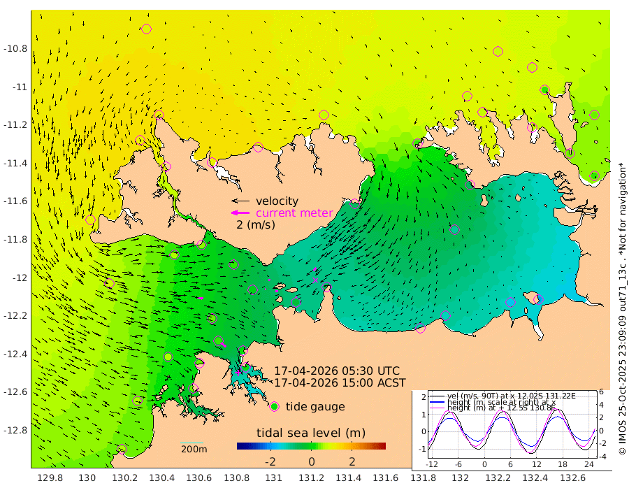 1cm/s 90T +4cm/s rms + 6cm/s 51T. Darwin_C1 52m 12cm/s -90T +4cm/s rms + 7cm/s -161T. Darwin_CW1 22m 6cm/s 72T +4cm/s rms + 8cm/s 61T. Darwin_CW2 34m 43cm/s -143T +3cm/s rms + 9cm/s 98T. Darwin_CW3 22m 27cm/s -87T +5cm/s rms + 7cm/s 88T. Darwin_C3 56m 22cm/s 61T +2cm/s rms + 9cm/s -126T. Darwin_CTbW 22m 66cm/s 96T +1cm/s rms + 1cm/s -47T. DARBGF 30m 72cm/s 128T +4cm/s rms + 3cm/s 80T. NRSDAR 19m 100cm Goodrich Bank 60cm Point Jenny 64cm Native Point 57cm Fish Reef 43cm Tapa Bay 103cm Point Fawcett (Offshore) 36cm Burge Point 57cm Munkunuwa 86cm Beagle A 23cm Parsons Bank 43cm Fenton Patches -1cm Hancox Shoal Area 14cm Nightcliff 3cm Darwin 27cm Charles Point Patches -41cm Glyde Point -121cm Chambers Bay -134cm Point Stuart -60cm Cape Hotham -105cm Christine Reef -158cm West Alligator Head -192cm East Field Island -76cm Two Hills Bay -75cm Camp Point 45cm Medina Inlet South 109cm South Barlow Point 110cm St. Asaph Bay 108cm Cape Van Dieman 107cm Snake Bay 98cm Cache Point 76cm Point Jahleel (Off) 29cm Cape Don 68cm Port Essington 73cm Smith Point - West 68cm NW Peacock Island 74cm North Of Jones Shoal 25cm Peacock Island 41cm Point David 70cm D'urville Point 33cm Copeland Island 41cm One Tree Point