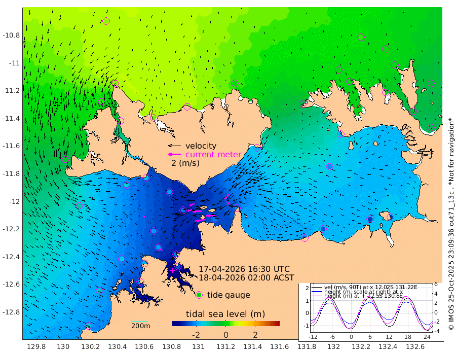 157cm/s -101T +4cm/s rms + 6cm/s 51T. Darwin_C1 52m 135cm/s -92T +4cm/s rms + 7cm/s -161T. Darwin_CW1 22m 69cm/s -106T +4cm/s rms + 8cm/s 61T. Darwin_CW2 34m 102cm/s -138T +3cm/s rms + 9cm/s 98T. Darwin_CW3 22m 137cm/s -90T +5cm/s rms + 7cm/s 88T. Darwin_C3 56m 79cm/s -116T +2cm/s rms + 9cm/s -126T. Darwin_CTbW 22m 31cm/s 109T +1cm/s rms + 1cm/s -47T. DARBGF 30m 44cm/s 137T +4cm/s rms + 3cm/s 80T. NRSDAR 19m 53cm Goodrich Bank -135cm Point Jenny -134cm Native Point -153cm Fish Reef -173cm Tapa Bay -19cm Point Fawcett (Offshore) -201cm Burge Point -144cm Munkunuwa -107cm Beagle A -201cm Parsons Bank -194cm Fenton Patches -215cm Hancox Shoal Area -220cm Nightcliff -242cm Darwin -198cm Charles Point Patches -216cm Glyde Point -227cm Chambers Bay -239cm Point Stuart -205cm Cape Hotham -210cm Christine Reef -263cm West Alligator Head -280cm East Field Island -187cm Two Hills Bay -190cm Camp Point -168cm Medina Inlet South -8cm South Barlow Point 24cm St. Asaph Bay 55cm Cape Van Dieman 42cm Snake Bay 44cm Cache Point 10cm Point Jahleel (Off) -63cm Cape Don 1cm Port Essington 3cm Smith Point - West 1cm NW Peacock Island 25cm North Of Jones Shoal 6cm Peacock Island -42cm Point David -4cm D'urville Point -47cm Copeland Island -35cm One Tree Point