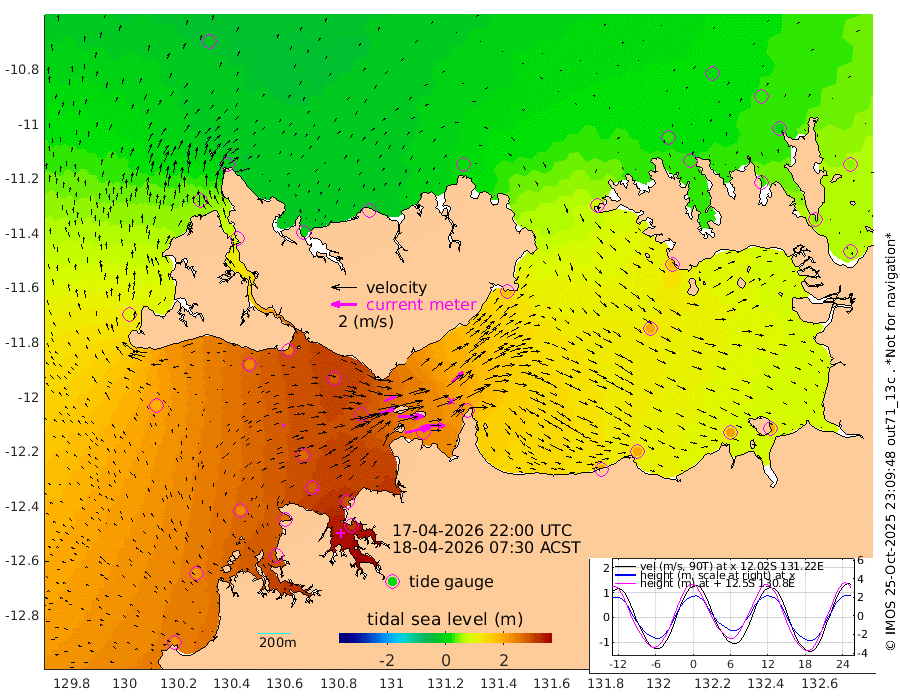 201cm/s 78T +4cm/s rms + 6cm/s 51T. Darwin_C1 52m 156cm/s 93T +4cm/s rms + 7cm/s -161T. Darwin_CW1 22m 124cm/s 72T +4cm/s rms + 8cm/s 61T. Darwin_CW2 34m 117cm/s 45T +3cm/s rms + 9cm/s 98T. Darwin_CW3 22m 200cm/s 89T +5cm/s rms + 7cm/s 88T. Darwin_C3 56m 97cm/s 66T +2cm/s rms + 9cm/s -126T. Darwin_CTbW 22m 19cm/s 56T +1cm/s rms + 1cm/s -47T. DARBGF 30m 10cm/s 33T +4cm/s rms + 3cm/s 80T. NRSDAR 19m -19cm Goodrich Bank 222cm Point Jenny 219cm Native Point 231cm Fish Reef 258cm Tapa Bay 93cm Point Fawcett (Offshore) 277cm Burge Point 232cm Munkunuwa 182cm Beagle A 273cm Parsons Bank 265cm Fenton Patches 282cm Hancox Shoal Area 292cm Nightcliff 306cm Darwin 274cm Charles Point Patches 233cm Glyde Point 207cm Chambers Bay 196cm Point Stuart 204cm Cape Hotham 195cm Christine Reef 211cm West Alligator Head 202cm East Field Island 169cm Two Hills Bay 173cm Camp Point 245cm Medina Inlet South 71cm South Barlow Point 36cm St. Asaph Bay -16cm Cape Van Dieman -11cm Snake Bay -8cm Cache Point 20cm Point Jahleel (Off) 86cm Cape Don 28cm Port Essington 31cm Smith Point - West 26cm NW Peacock Island 3cm North Of Jones Shoal 3cm Peacock Island 53cm Point David 33cm D'urville Point 58cm Copeland Island 49cm One Tree Point