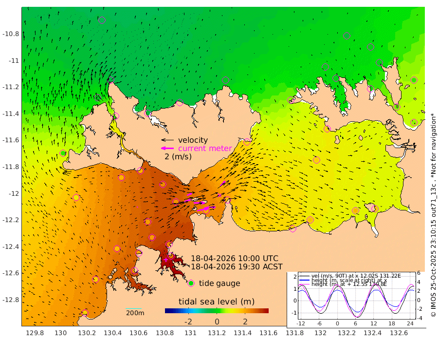 185cm/s 78T +4cm/s rms + 6cm/s 51T. Darwin_C1 52m 142cm/s 92T +4cm/s rms + 7cm/s -161T. Darwin_CW1 22m 106cm/s 72T +4cm/s rms + 8cm/s 61T. Darwin_CW2 34m 116cm/s 44T +3cm/s rms + 9cm/s 98T. Darwin_CW3 22m 176cm/s 89T +5cm/s rms + 7cm/s 88T. Darwin_C3 56m 86cm/s 65T +2cm/s rms + 9cm/s -126T. Darwin_CTbW 22m 9cm/s 12T +1cm/s rms + 1cm/s -47T. DARBGF 30m 13cm/s -1T +4cm/s rms + 3cm/s 80T. NRSDAR 19m -59cm Goodrich Bank 155cm Point Jenny 155cm Native Point 172cm Fish Reef 193cm Tapa Bay 30cm Point Fawcett (Offshore) 221cm Burge Point 184cm Munkunuwa 119cm Beagle A 228cm Parsons Bank 207cm Fenton Patches 224cm Hancox Shoal Area 231cm Nightcliff 255cm Darwin 209cm Charles Point Patches 194cm Glyde Point 164cm Chambers Bay 169cm Point Stuart 170cm Cape Hotham 149cm Christine Reef 183cm West Alligator Head 176cm East Field Island 139cm Two Hills Bay 141cm Camp Point 191cm Medina Inlet South 26cm South Barlow Point -18cm St. Asaph Bay -55cm Cape Van Dieman -40cm Snake Bay -52cm Cache Point -19cm Point Jahleel (Off) 52cm Cape Don -3cm Port Essington -6cm Smith Point - West -5cm NW Peacock Island -35cm North Of Jones Shoal -8cm Peacock Island 42cm Point David 4cm D'urville Point 47cm Copeland Island 32cm One Tree Point