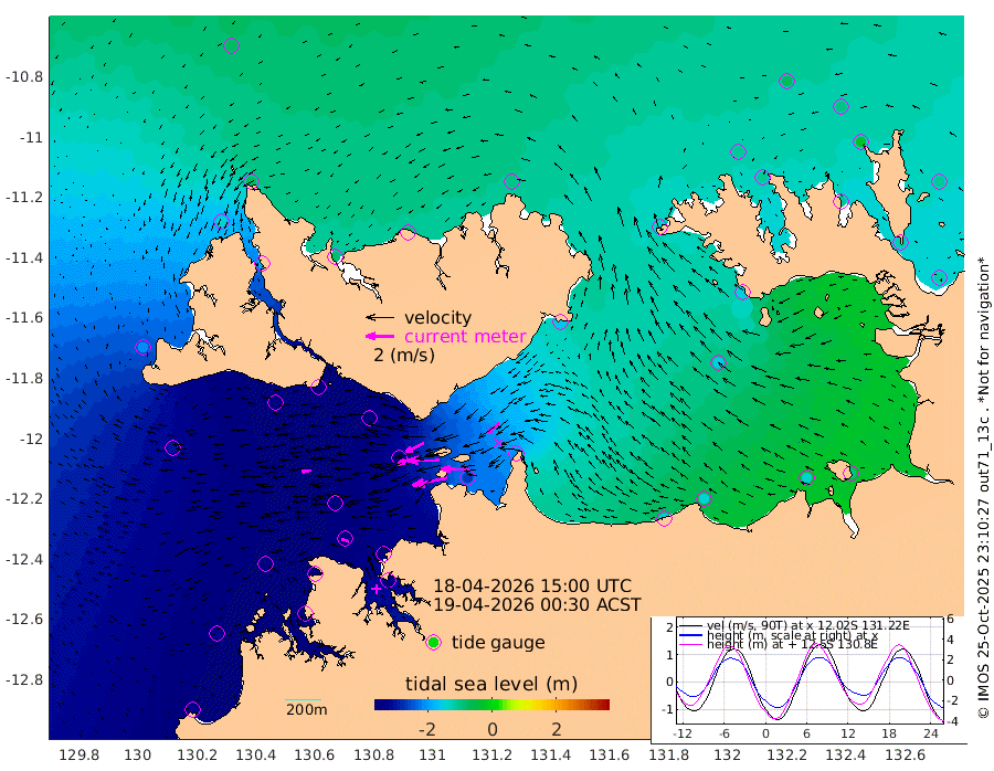 252cm/s -102T +4cm/s rms + 6cm/s 51T. Darwin_C1 52m 196cm/s -90T +4cm/s rms + 7cm/s -161T. Darwin_CW1 22m 157cm/s -107T +4cm/s rms + 8cm/s 61T. Darwin_CW2 34m 109cm/s -132T +3cm/s rms + 9cm/s 98T. Darwin_CW3 22m 220cm/s -91T +5cm/s rms + 7cm/s 88T. Darwin_C3 56m 144cm/s -115T +2cm/s rms + 9cm/s -126T. Darwin_CTbW 22m 71cm/s -95T +1cm/s rms + 1cm/s -47T. DARBGF 30m 54cm/s -68T +4cm/s rms + 3cm/s 80T. NRSDAR 19m -68cm Goodrich Bank -322cm Point Jenny -322cm Native Point -335cm Fish Reef -354cm Tapa Bay -203cm Point Fawcett (Offshore) -374cm Burge Point -334cm Munkunuwa -296cm Beagle A -361cm Parsons Bank -364cm Fenton Patches -349cm Hancox Shoal Area -370cm Nightcliff -389cm Darwin -369cm Charles Point Patches -261cm Glyde Point -156cm Chambers Bay -137cm Point Stuart -208cm Cape Hotham -153cm Christine Reef -135cm West Alligator Head -96cm East Field Island -152cm Two Hills Bay -159cm Camp Point -345cm Medina Inlet South -184cm South Barlow Point -139cm St. Asaph Bay -77cm Cape Van Dieman -87cm Snake Bay -80cm Cache Point -95cm Point Jahleel (Off) -139cm Cape Don -103cm Port Essington -107cm Smith Point - West -99cm NW Peacock Island -75cm North Of Jones Shoal -29cm Peacock Island -114cm Point David -110cm D'urville Point -113cm Copeland Island -109cm One Tree Point