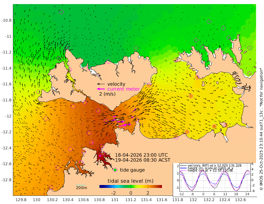206cm/s 79T +4cm/s rms + 6cm/s 51T. Darwin_C1 52m 163cm/s 93T +4cm/s rms + 7cm/s -161T. Darwin_CW1 22m 119cm/s 71T +4cm/s rms + 8cm/s 61T. Darwin_CW2 34m 121cm/s 45T +3cm/s rms + 9cm/s 98T. Darwin_CW3 22m 197cm/s 90T +5cm/s rms + 7cm/s 88T. Darwin_C3 56m 100cm/s 66T +2cm/s rms + 9cm/s -126T. Darwin_CTbW 22m 12cm/s -8T +1cm/s rms + 1cm/s -47T. DARBGF 30m 25cm/s -32T +4cm/s rms + 3cm/s 80T. NRSDAR 19m -30cm Goodrich Bank 200cm Point Jenny 196cm Native Point 209cm Fish Reef 234cm Tapa Bay 73cm Point Fawcett (Offshore) 256cm Burge Point 207cm Munkunuwa 159cm Beagle A 253cm Parsons Bank 243cm Fenton Patches 266cm Hancox Shoal Area 273cm Nightcliff 288cm Darwin 252cm Charles Point Patches 233cm Glyde Point 228cm Chambers Bay 224cm Point Stuart 211cm Cape Hotham 217cm Christine Reef 246cm West Alligator Head 245cm East Field Island 186cm Two Hills Bay 186cm Camp Point 224cm Medina Inlet South 50cm South Barlow Point 18cm St. Asaph Bay -29cm Cape Van Dieman -24cm Snake Bay -18cm Cache Point 12cm Point Jahleel (Off) 84cm Cape Don 19cm Port Essington 21cm Smith Point - West 17cm NW Peacock Island -4cm North Of Jones Shoal 0cm Peacock Island 45cm Point David 23cm D'urville Point 50cm Copeland Island 42cm One Tree Point