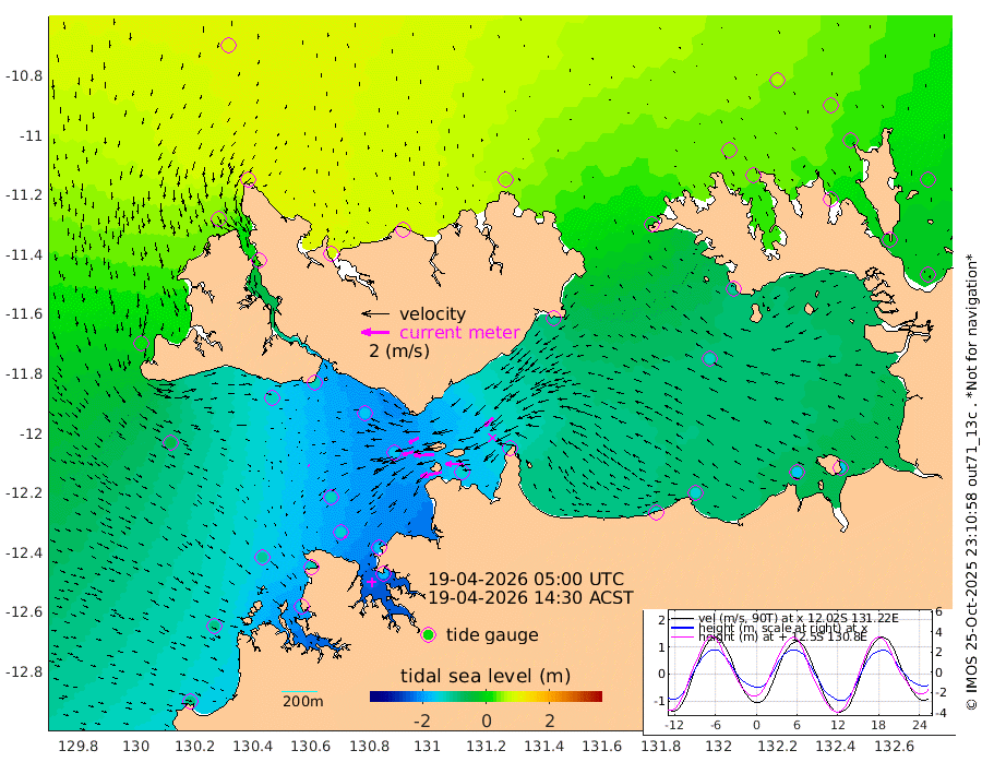 155cm/s -101T +4cm/s rms + 6cm/s 51T. Darwin_C1 52m 127cm/s -91T +4cm/s rms + 7cm/s -161T. Darwin_CW1 22m 81cm/s -107T +4cm/s rms + 8cm/s 61T. Darwin_CW2 34m 85cm/s -135T +3cm/s rms + 9cm/s 98T. Darwin_CW3 22m 143cm/s -91T +5cm/s rms + 7cm/s 88T. Darwin_C3 56m 78cm/s -115T +2cm/s rms + 9cm/s -126T. Darwin_CTbW 22m 12cm/s 133T +1cm/s rms + 1cm/s -47T. DARBGF 30m 20cm/s 158T +4cm/s rms + 3cm/s 80T. NRSDAR 19m 91cm Goodrich Bank -99cm Point Jenny -96cm Native Point -108cm Fish Reef -130cm Tapa Bay 14cm Point Fawcett (Offshore) -150cm Burge Point -129cm Munkunuwa -56cm Beagle A -162cm Parsons Bank -133cm Fenton Patches -165cm Hancox Shoal Area -167cm Nightcliff -178cm Darwin -136cm Charles Point Patches -140cm Glyde Point -143cm Chambers Bay -146cm Point Stuart -127cm Cape Hotham -131cm Christine Reef -164cm West Alligator Head -161cm East Field Island -109cm Two Hills Bay -104cm Camp Point -125cm Medina Inlet South 23cm South Barlow Point 55cm St. Asaph Bay 89cm Cape Van Dieman 83cm Snake Bay 85cm Cache Point 53cm Point Jahleel (Off) -14cm Cape Don 42cm Port Essington 42cm Smith Point - West 44cm NW Peacock Island 65cm North Of Jones Shoal 20cm Peacock Island 6cm Point David 37cm D'urville Point -1cm Copeland Island 13cm One Tree Point