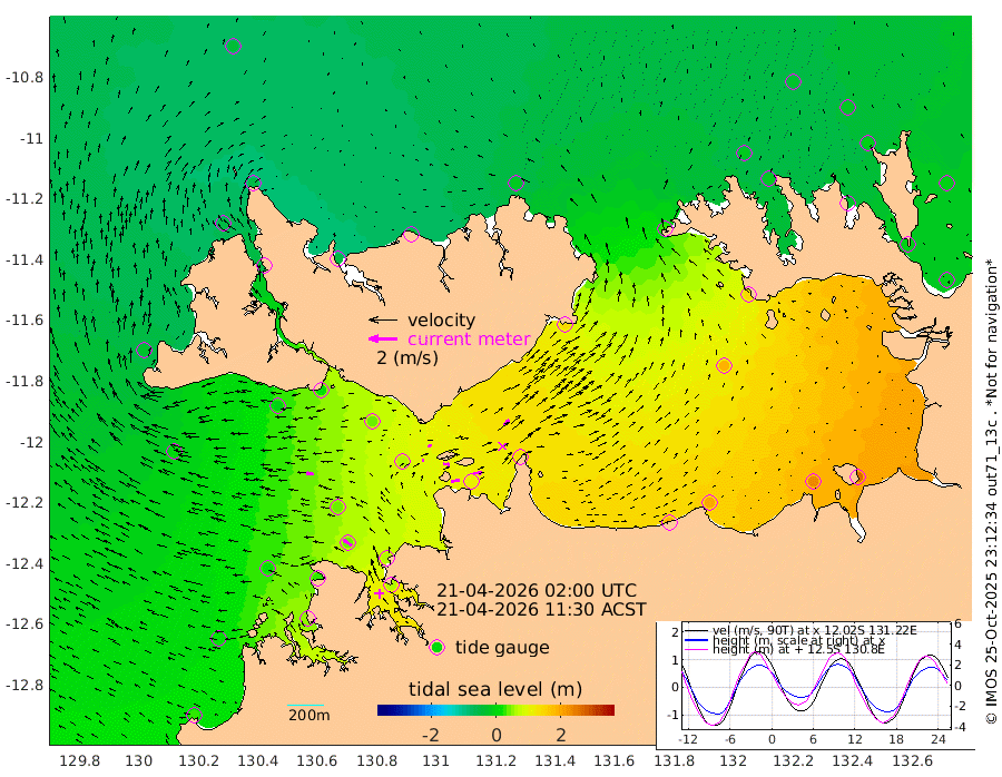 57cm/s 80T +4cm/s rms + 6cm/s 51T. Darwin_C1 52m 62cm/s 89T +4cm/s rms + 7cm/s -161T. Darwin_CW1 22m 10cm/s 68T +4cm/s rms + 8cm/s 61T. Darwin_CW2 34m 55cm/s 43T +3cm/s rms + 9cm/s 98T. Darwin_CW3 22m 45cm/s 94T +5cm/s rms + 7cm/s 88T. Darwin_C3 56m 27cm/s 68T +2cm/s rms + 9cm/s -126T. Darwin_CTbW 22m 56cm/s -82T +1cm/s rms + 1cm/s -47T. DARBGF 30m 72cm/s -53T +4cm/s rms + 3cm/s 80T. NRSDAR 19m -45cm Goodrich Bank 23cm Point Jenny 18cm Native Point 20cm Fish Reef 32cm Tapa Bay -30cm Point Fawcett (Offshore) 46cm Burge Point -1cm Munkunuwa 5cm Beagle A 38cm Parsons Bank 43cm Fenton Patches 64cm Hancox Shoal Area 62cm Nightcliff 62cm Darwin 41cm Charles Point Patches 108cm Glyde Point 188cm Chambers Bay 202cm Point Stuart 124cm Cape Hotham 181cm Christine Reef 230cm West Alligator Head 267cm East Field Island 142cm Two Hills Bay 138cm Camp Point 22cm Medina Inlet South -48cm South Barlow Point -47cm St. Asaph Bay -52cm Cape Van Dieman -54cm Snake Bay -36cm Cache Point -18cm Point Jahleel (Off) 29cm Cape Don -22cm Port Essington -22cm Smith Point - West -20cm NW Peacock Island -25cm North Of Jones Shoal -9cm Peacock Island -6cm Point David -23cm D'urville Point -2cm Copeland Island -3cm One Tree Point