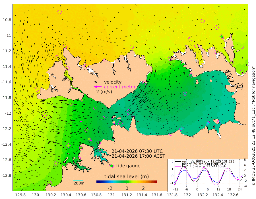 46cm/s -100T +4cm/s rms + 6cm/s 51T. Darwin_C1 52m 40cm/s -92T +4cm/s rms + 7cm/s -161T. Darwin_CW1 22m 5cm/s -115T +4cm/s rms + 8cm/s 61T. Darwin_CW2 34m 53cm/s -137T +3cm/s rms + 9cm/s 98T. Darwin_CW3 22m 36cm/s -89T +5cm/s rms + 7cm/s 88T. Darwin_C3 56m 12cm/s -114T +2cm/s rms + 9cm/s -126T. Darwin_CTbW 22m 53cm/s 97T +1cm/s rms + 1cm/s -47T. DARBGF 30m 57cm/s 129T +4cm/s rms + 3cm/s 80T. NRSDAR 19m 119cm Goodrich Bank 47cm Point Jenny 50cm Native Point 45cm Fish Reef 34cm Tapa Bay 106cm Point Fawcett (Offshore) 23cm Burge Point 36cm Munkunuwa 71cm Beagle A 10cm Parsons Bank 26cm Fenton Patches -5cm Hancox Shoal Area 0cm Nightcliff 6cm Darwin 41cm Charles Point Patches -36cm Glyde Point -109cm Chambers Bay -126cm Point Stuart -56cm Cape Hotham -99cm Christine Reef -152cm West Alligator Head -176cm East Field Island -70cm Two Hills Bay -56cm Camp Point 40cm Medina Inlet South 113cm South Barlow Point 119cm St. Asaph Bay 123cm Cape Van Dieman 124cm Snake Bay 115cm Cache Point 89cm Point Jahleel (Off) 41cm Cape Don 89cm Port Essington 86cm Smith Point - West 85cm NW Peacock Island 98cm North Of Jones Shoal 33cm Peacock Island 58cm Point David 84cm D'urville Point 50cm Copeland Island 63cm One Tree Point