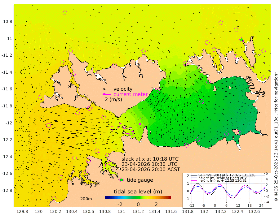90cm/s 79T +4cm/s rms + 6cm/s 51T. Darwin_C1 52m 57cm/s 84T +4cm/s rms + 7cm/s -161T. Darwin_CW1 22m 38cm/s 77T +4cm/s rms + 8cm/s 61T. Darwin_CW2 34m 19cm/s 64T +3cm/s rms + 9cm/s 98T. Darwin_CW3 22m 49cm/s 88T +5cm/s rms + 7cm/s 88T. Darwin_C3 56m 59cm/s 62T +2cm/s rms + 9cm/s -126T. Darwin_CTbW 22m 41cm/s 91T +1cm/s rms + 1cm/s -47T. DARBGF 30m 37cm/s 119T +4cm/s rms + 3cm/s 80T. NRSDAR 19m 74cm Goodrich Bank 97cm Point Jenny 98cm Native Point 104cm Fish Reef 106cm Tapa Bay 100cm Point Fawcett (Offshore) 102cm Burge Point 108cm Munkunuwa 90cm Beagle A 111cm Parsons Bank 91cm Fenton Patches 95cm Hancox Shoal Area 92cm Nightcliff 116cm Darwin 125cm Charles Point Patches 51cm Glyde Point -23cm Chambers Bay -31cm Point Stuart 27cm Cape Hotham -20cm Christine Reef -47cm West Alligator Head -77cm East Field Island 7cm Two Hills Bay 9cm Camp Point 114cm Medina Inlet South 106cm South Barlow Point 89cm St. Asaph Bay 79cm Cape Van Dieman 88cm Snake Bay 75cm Cache Point 68cm Point Jahleel (Off) 65cm Cape Don 85cm Port Essington 81cm Smith Point - West 82cm NW Peacock Island 79cm North Of Jones Shoal 29cm Peacock Island 86cm Point David 86cm D'urville Point 82cm Copeland Island 87cm One Tree Point