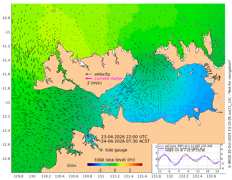18cm/s -105T +4cm/s rms + 6cm/s 51T. Darwin_C1 52m 22cm/s -92T +4cm/s rms + 7cm/s -161T. Darwin_CW1 22m 10cm/s 69T +4cm/s rms + 8cm/s 61T. Darwin_CW2 34m 49cm/s -145T +3cm/s rms + 9cm/s 98T. Darwin_CW3 22m 12cm/s -78T +5cm/s rms + 7cm/s 88T. Darwin_C3 56m 3cm/s -101T +2cm/s rms + 9cm/s -126T. Darwin_CTbW 22m 48cm/s 95T +1cm/s rms + 1cm/s -47T. DARBGF 30m 53cm/s 125T +4cm/s rms + 3cm/s 80T. NRSDAR 19m 41cm Goodrich Bank -11cm Point Jenny -7cm Native Point -9cm Fish Reef -17cm Tapa Bay 33cm Point Fawcett (Offshore) -30cm Burge Point 17cm Munkunuwa 5cm Beagle A -27cm Parsons Bank -26cm Fenton Patches -45cm Hancox Shoal Area -35cm Nightcliff -43cm Darwin -27cm Charles Point Patches -89cm Glyde Point -155cm Chambers Bay -169cm Point Stuart -105cm Cape Hotham -141cm Christine Reef -187cm West Alligator Head -218cm East Field Island -119cm Two Hills Bay -118cm Camp Point -6cm Medina Inlet South 48cm South Barlow Point 50cm St. Asaph Bay 44cm Cape Van Dieman 44cm Snake Bay 30cm Cache Point 16cm Point Jahleel (Off) -32cm Cape Don 5cm Port Essington 9cm Smith Point - West 2cm NW Peacock Island 16cm North Of Jones Shoal 4cm Peacock Island -32cm Point David 2cm D'urville Point -36cm Copeland Island -27cm One Tree Point