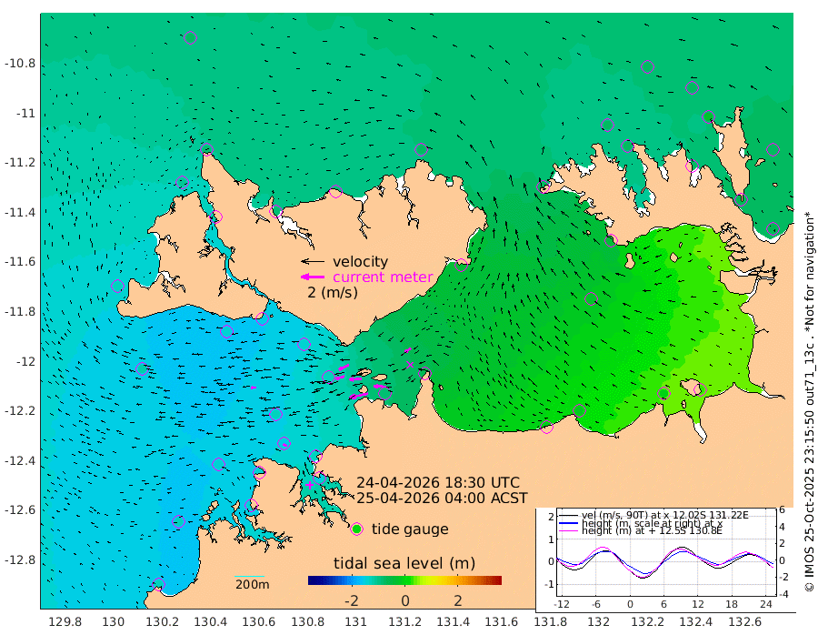 166cm/s -102T +4cm/s rms + 6cm/s 51T. Darwin_C1 52m 105cm/s -89T +4cm/s rms + 7cm/s -161T. Darwin_CW1 22m 75cm/s -107T +4cm/s rms + 8cm/s 61T. Darwin_CW2 34m 63cm/s -125T +3cm/s rms + 9cm/s 98T. Darwin_CW3 22m 103cm/s -91T +5cm/s rms + 7cm/s 88T. Darwin_C3 56m 96cm/s -115T +2cm/s rms + 9cm/s -126T. Darwin_CTbW 22m 46cm/s -93T +1cm/s rms + 1cm/s -47T. DARBGF 30m 36cm/s -67T +4cm/s rms + 3cm/s 80T. NRSDAR 19m -77cm Goodrich Bank -134cm Point Jenny -135cm Native Point -139cm Fish Reef -142cm Tapa Bay -126cm Point Fawcett (Offshore) -139cm Burge Point -145cm Munkunuwa -121cm Beagle A -140cm Parsons Bank -125cm Fenton Patches -125cm Hancox Shoal Area -133cm Nightcliff -148cm Darwin -150cm Charles Point Patches -82cm Glyde Point -18cm Chambers Bay -12cm Point Stuart -57cm Cape Hotham -23cm Christine Reef -5cm West Alligator Head 25cm East Field Island -42cm Two Hills Bay -34cm Camp Point -150cm Medina Inlet South -118cm South Barlow Point -103cm St. Asaph Bay -81cm Cape Van Dieman -89cm Snake Bay -79cm Cache Point -75cm Point Jahleel (Off) -77cm Cape Don -78cm Port Essington -77cm Smith Point - West -72cm NW Peacock Island -76cm North Of Jones Shoal -26cm Peacock Island -62cm Point David -74cm D'urville Point -56cm Copeland Island -69cm One Tree Point