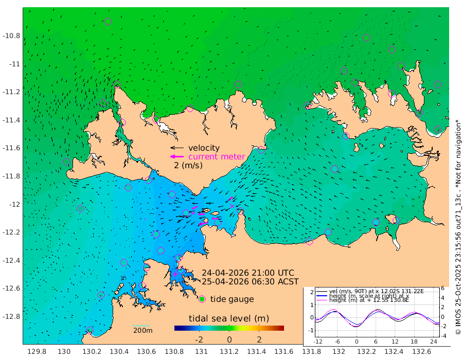 151cm/s -101T +4cm/s rms + 6cm/s 51T. Darwin_C1 52m 100cm/s -91T +4cm/s rms + 7cm/s -161T. Darwin_CW1 22m 52cm/s -105T +4cm/s rms + 8cm/s 61T. Darwin_CW2 34m 80cm/s -134T +3cm/s rms + 9cm/s 98T. Darwin_CW3 22m 87cm/s -90T +5cm/s rms + 7cm/s 88T. Darwin_C3 56m 90cm/s -115T +2cm/s rms + 9cm/s -126T. Darwin_CTbW 22m 8cm/s -120T +1cm/s rms + 1cm/s -47T. DARBGF 30m 5cm/s -159T +4cm/s rms + 3cm/s 80T. NRSDAR 19m -11cm Goodrich Bank -122cm Point Jenny -119cm Native Point -127cm Fish Reef -134cm Tapa Bay -70cm Point Fawcett (Offshore) -143cm Burge Point -114cm Munkunuwa -97cm Beagle A -142cm Parsons Bank -130cm Fenton Patches -142cm Hancox Shoal Area -142cm Nightcliff -157cm Darwin -142cm Charles Point Patches -137cm Glyde Point -137cm Chambers Bay -142cm Point Stuart -129cm Cape Hotham -126cm Christine Reef -151cm West Alligator Head -147cm East Field Island -125cm Two Hills Bay -114cm Camp Point -129cm Medina Inlet South -49cm South Barlow Point -33cm St. Asaph Bay -14cm Cape Van Dieman -19cm Snake Bay -24cm Cache Point -35cm Point Jahleel (Off) -79cm Cape Don -46cm Port Essington -44cm Smith Point - West -44cm NW Peacock Island -33cm North Of Jones Shoal -13cm Peacock Island -66cm Point David -48cm D'urville Point -67cm Copeland Island -66cm One Tree Point