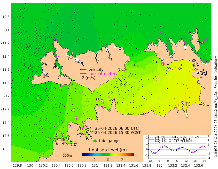 0cm/s -118T +4cm/s rms + 6cm/s 51T. Darwin_C1 52m 25cm/s 93T +4cm/s rms + 7cm/s -161T. Darwin_CW1 22m 9cm/s 80T +4cm/s rms + 8cm/s 61T. Darwin_CW2 34m 19cm/s 27T +3cm/s rms + 9cm/s 98T. Darwin_CW3 22m 29cm/s 91T +5cm/s rms + 7cm/s 88T. Darwin_C3 56m 2cm/s 132T +2cm/s rms + 9cm/s -126T. Darwin_CTbW 22m 17cm/s -79T +1cm/s rms + 1cm/s -47T. DARBGF 30m 17cm/s -55T +4cm/s rms + 3cm/s 80T. NRSDAR 19m -12cm Goodrich Bank 48cm Point Jenny 48cm Native Point 45cm Fish Reef 51cm Tapa Bay 11cm Point Fawcett (Offshore) 66cm Burge Point 35cm Munkunuwa 42cm Beagle A 43cm Parsons Bank 62cm Fenton Patches 53cm Hancox Shoal Area 61cm Nightcliff 60cm Darwin 50cm Charles Point Patches 72cm Glyde Point 99cm Chambers Bay 101cm Point Stuart 70cm Cape Hotham 93cm Christine Reef 113cm West Alligator Head 131cm East Field Island 70cm Two Hills Bay 80cm Camp Point 44cm Medina Inlet South -5cm South Barlow Point -4cm St. Asaph Bay -14cm Cape Van Dieman -17cm Snake Bay -9cm Cache Point -3cm Point Jahleel (Off) 18cm Cape Don -12cm Port Essington -16cm Smith Point - West -17cm NW Peacock Island -17cm North Of Jones Shoal -7cm Peacock Island -14cm Point David -20cm D'urville Point -15cm Copeland Island -13cm One Tree Point