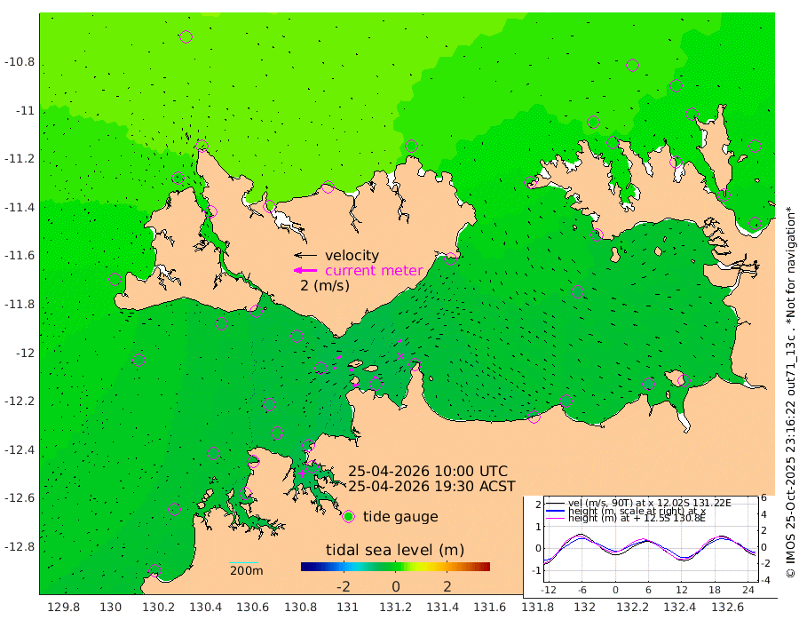 60cm/s -102T +4cm/s rms + 6cm/s 51T. Darwin_C1 52m 27cm/s -89T +4cm/s rms + 7cm/s -161T. Darwin_CW1 22m 25cm/s -110T +4cm/s rms + 8cm/s 61T. Darwin_CW2 34m 33cm/s -135T +3cm/s rms + 9cm/s 98T. Darwin_CW3 22m 26cm/s -91T +5cm/s rms + 7cm/s 88T. Darwin_C3 56m 38cm/s -116T +2cm/s rms + 9cm/s -126T. Darwin_CTbW 22m 6cm/s -100T +1cm/s rms + 1cm/s -47T. DARBGF 30m 7cm/s -80T +4cm/s rms + 3cm/s 80T. NRSDAR 19m 39cm Goodrich Bank -40cm Point Jenny -37cm Native Point -47cm Fish Reef -42cm Tapa Bay 2cm Point Fawcett (Offshore) -50cm Burge Point -39cm Munkunuwa -36cm Beagle A -49cm Parsons Bank -57cm Fenton Patches -50cm Hancox Shoal Area -55cm Nightcliff -47cm Darwin -31cm Charles Point Patches -48cm Glyde Point -59cm Chambers Bay -63cm Point Stuart -50cm Cape Hotham -52cm Christine Reef -73cm West Alligator Head -73cm East Field Island -47cm Two Hills Bay -31cm Camp Point -36cm Medina Inlet South 14cm South Barlow Point 22cm St. Asaph Bay 37cm Cape Van Dieman 39cm Snake Bay 31cm Cache Point 19cm Point Jahleel (Off) -3cm Cape Don 20cm Port Essington 13cm Smith Point - West 17cm NW Peacock Island 30cm North Of Jones Shoal 9cm Peacock Island 10cm Point David 13cm D'urville Point 5cm Copeland Island 13cm One Tree Point