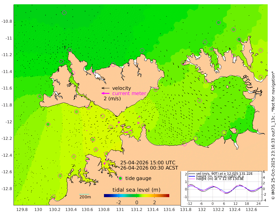 87cm/s 79T +4cm/s rms + 6cm/s 51T. Darwin_C1 52m 35cm/s 89T +4cm/s rms + 7cm/s -161T. Darwin_CW1 22m 24cm/s 73T +4cm/s rms + 8cm/s 61T. Darwin_CW2 34m 43cm/s 46T +3cm/s rms + 9cm/s 98T. Darwin_CW3 22m 28cm/s 89T +5cm/s rms + 7cm/s 88T. Darwin_C3 56m 51cm/s 64T +2cm/s rms + 9cm/s -126T. Darwin_CTbW 22m 11cm/s 90T +1cm/s rms + 1cm/s -47T. DARBGF 30m 8cm/s 108T +4cm/s rms + 3cm/s 80T. NRSDAR 19m -10cm Goodrich Bank 45cm Point Jenny 41cm Native Point 51cm Fish Reef 50cm Tapa Bay 23cm Point Fawcett (Offshore) 48cm Burge Point 41cm Munkunuwa 29cm Beagle A 63cm Parsons Bank 43cm Fenton Patches 61cm Hancox Shoal Area 53cm Nightcliff 60cm Darwin 53cm Charles Point Patches 52cm Glyde Point 54cm Chambers Bay 56cm Point Stuart 55cm Cape Hotham 42cm Christine Reef 58cm West Alligator Head 48cm East Field Island 54cm Two Hills Bay 36cm Camp Point 47cm Medina Inlet South 12cm South Barlow Point 1cm St. Asaph Bay -5cm Cape Van Dieman -2cm Snake Bay 2cm Cache Point 10cm Point Jahleel (Off) 38cm Cape Don 28cm Port Essington 29cm Smith Point - West 31cm NW Peacock Island 18cm North Of Jones Shoal 9cm Peacock Island 57cm Point David 38cm D'urville Point 60cm Copeland Island 53cm One Tree Point
