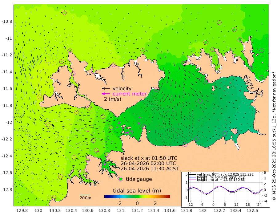 99cm/s 78T +4cm/s rms + 6cm/s 51T. Darwin_C1 52m 43cm/s 95T +4cm/s rms + 7cm/s -161T. Darwin_CW1 22m 39cm/s 73T +4cm/s rms + 8cm/s 61T. Darwin_CW2 34m 30cm/s 59T +3cm/s rms + 9cm/s 98T. Darwin_CW3 22m 41cm/s 89T +5cm/s rms + 7cm/s 88T. Darwin_C3 56m 61cm/s 65T +2cm/s rms + 9cm/s -126T. Darwin_CTbW 22m 43cm/s 92T +1cm/s rms + 1cm/s -47T. DARBGF 30m 43cm/s 119T +4cm/s rms + 3cm/s 80T. NRSDAR 19m 46cm Goodrich Bank 59cm Point Jenny 60cm Native Point 63cm Fish Reef 55cm Tapa Bay 69cm Point Fawcett (Offshore) 47cm Burge Point 68cm Munkunuwa 64cm Beagle A 50cm Parsons Bank 52cm Fenton Patches 36cm Hancox Shoal Area 47cm Nightcliff 42cm Darwin 47cm Charles Point Patches 7cm Glyde Point -38cm Chambers Bay -43cm Point Stuart -7cm Cape Hotham -30cm Christine Reef -49cm West Alligator Head -73cm East Field Island -13cm Two Hills Bay -28cm Camp Point 61cm Medina Inlet South 68cm South Barlow Point 62cm St. Asaph Bay 49cm Cape Van Dieman 52cm Snake Bay 46cm Cache Point 40cm Point Jahleel (Off) 25cm Cape Don 33cm Port Essington 40cm Smith Point - West 33cm NW Peacock Island 36cm North Of Jones Shoal 12cm Peacock Island 11cm Point David 35cm D'urville Point 8cm Copeland Island 16cm One Tree Point