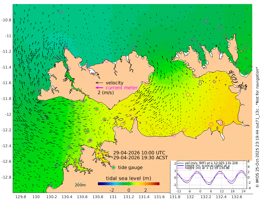 17cm/s 79T +4cm/s rms + 6cm/s 51T. Darwin_C1 52m 34cm/s 90T +4cm/s rms + 7cm/s -161T. Darwin_CW1 22m 10cm/s 65T +4cm/s rms + 8cm/s 61T. Darwin_CW2 34m 34cm/s 40T +3cm/s rms + 9cm/s 98T. Darwin_CW3 22m 33cm/s 93T +5cm/s rms + 7cm/s 88T. Darwin_C3 56m 1cm/s 82T +2cm/s rms + 9cm/s -126T. Darwin_CTbW 22m 52cm/s -83T +1cm/s rms + 1cm/s -47T. DARBGF 30m 60cm/s -53T +4cm/s rms + 3cm/s 80T. NRSDAR 19m -83cm Goodrich Bank -19cm Point Jenny -19cm Native Point -10cm Fish Reef 0cm Tapa Bay -78cm Point Fawcett (Offshore) 22cm Burge Point -5cm Munkunuwa -38cm Beagle A 25cm Parsons Bank 12cm Fenton Patches 32cm Hancox Shoal Area 17cm Nightcliff 44cm Darwin 15cm Charles Point Patches 67cm Glyde Point 104cm Chambers Bay 127cm Point Stuart 71cm Cape Hotham 94cm Christine Reef 146cm West Alligator Head 172cm East Field Island 75cm Two Hills Bay 80cm Camp Point 0cm Medina Inlet South -77cm South Barlow Point -89cm St. Asaph Bay -87cm Cape Van Dieman -85cm Snake Bay -84cm Cache Point -62cm Point Jahleel (Off) -18cm Cape Don -55cm Port Essington -63cm Smith Point - West -57cm NW Peacock Island -75cm North Of Jones Shoal -25cm Peacock Island -27cm Point David -58cm D'urville Point -23cm Copeland Island -33cm One Tree Point