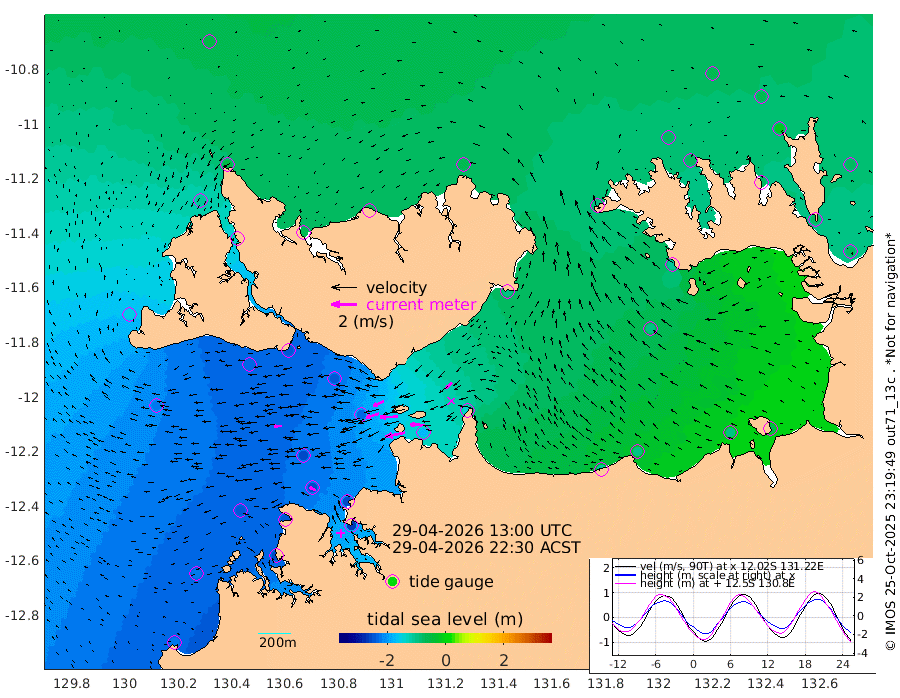 155cm/s -102T +4cm/s rms + 6cm/s 51T. Darwin_C1 52m 116cm/s -89T +4cm/s rms + 7cm/s -161T. Darwin_CW1 22m 102cm/s -107T +4cm/s rms + 8cm/s 61T. Darwin_CW2 34m 62cm/s -133T +3cm/s rms + 9cm/s 98T. Darwin_CW3 22m 139cm/s -91T +5cm/s rms + 7cm/s 88T. Darwin_C3 56m 91cm/s -115T +2cm/s rms + 9cm/s -126T. Darwin_CTbW 22m 62cm/s -93T +1cm/s rms + 1cm/s -47T. DARBGF 30m 52cm/s -63T +4cm/s rms + 3cm/s 80T. NRSDAR 19m -46cm Goodrich Bank -224cm Point Jenny -222cm Native Point -244cm Fish Reef -239cm Tapa Bay -154cm Point Fawcett (Offshore) -257cm Burge Point -229cm Munkunuwa -214cm Beagle A -241cm Parsons Bank -253cm Fenton Patches -229cm Hancox Shoal Area -252cm Nightcliff -262cm Darwin -250cm Charles Point Patches -175cm Glyde Point -106cm Chambers Bay -92cm Point Stuart -142cm Cape Hotham -96cm Christine Reef -91cm West Alligator Head -64cm East Field Island -105cm Two Hills Bay -101cm Camp Point -240cm Medina Inlet South -132cm South Barlow Point -103cm St. Asaph Bay -54cm Cape Van Dieman -59cm Snake Bay -59cm Cache Point -67cm Point Jahleel (Off) -97cm Cape Don -72cm Port Essington -75cm Smith Point - West -66cm NW Peacock Island -58cm North Of Jones Shoal -22cm Peacock Island -68cm Point David -74cm D'urville Point -68cm Copeland Island -72cm One Tree Point