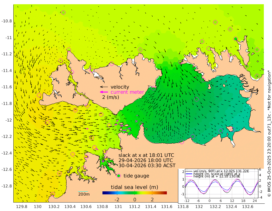 89cm/s 78T +4cm/s rms + 6cm/s 51T. Darwin_C1 52m 58cm/s 86T +4cm/s rms + 7cm/s -161T. Darwin_CW1 22m 63cm/s 75T +4cm/s rms + 8cm/s 61T. Darwin_CW2 34m 20cm/s 70T +3cm/s rms + 9cm/s 98T. Darwin_CW3 22m 73cm/s 87T +5cm/s rms + 7cm/s 88T. Darwin_C3 56m 56cm/s 64T +2cm/s rms + 9cm/s -126T. Darwin_CTbW 22m 74cm/s 91T +1cm/s rms + 1cm/s -47T. DARBGF 30m 75cm/s 121T +4cm/s rms + 3cm/s 80T. NRSDAR 19m 53cm Goodrich Bank 137cm Point Jenny 136cm Native Point 140cm Fish Reef 142cm Tapa Bay 126cm Point Fawcett (Offshore) 126cm Burge Point 146cm Munkunuwa 126cm Beagle A 125cm Parsons Bank 122cm Fenton Patches 112cm Hancox Shoal Area 130cm Nightcliff 121cm Darwin 131cm Charles Point Patches 44cm Glyde Point -24cm Chambers Bay -51cm Point Stuart 19cm Cape Hotham -32cm Christine Reef -65cm West Alligator Head -107cm East Field Island -10cm Two Hills Bay -15cm Camp Point 137cm Medina Inlet South 107cm South Barlow Point 97cm St. Asaph Bay 63cm Cape Van Dieman 64cm Snake Bay 60cm Cache Point 53cm Point Jahleel (Off) 46cm Cape Don 55cm Port Essington 59cm Smith Point - West 50cm NW Peacock Island 56cm North Of Jones Shoal 20cm Peacock Island 43cm Point David 56cm D'urville Point 41cm Copeland Island 45cm One Tree Point