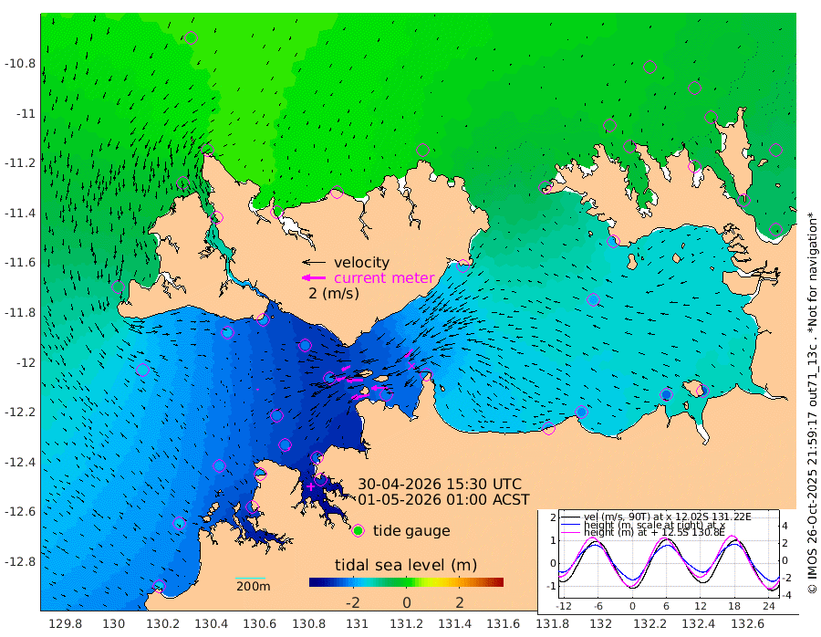 155cm/s -101T +4cm/s rms + 6cm/s 51T. Darwin_C1 52m 136cm/s -92T +4cm/s rms + 7cm/s -161T. Darwin_CW1 22m 76cm/s -106T +4cm/s rms + 8cm/s 61T. Darwin_CW2 34m 92cm/s -137T +3cm/s rms + 9cm/s 98T. Darwin_CW3 22m 140cm/s -90T +5cm/s rms + 7cm/s 88T. Darwin_C3 56m 77cm/s -116T +2cm/s rms + 9cm/s -126T. Darwin_CTbW 22m 11cm/s 147T +1cm/s rms + 1cm/s -47T. DARBGF 30m 20cm/s 149T +4cm/s rms + 3cm/s 80T. NRSDAR 19m 20cm Goodrich Bank -168cm Point Jenny -165cm Native Point -196cm Fish Reef -195cm Tapa Bay -68cm Point Fawcett (Offshore) -233cm Burge Point -177cm Munkunuwa -147cm Beagle A -223cm Parsons Bank -220cm Fenton Patches -222cm Hancox Shoal Area -228cm Nightcliff -260cm Darwin -225cm Charles Point Patches -215cm Glyde Point -200cm Chambers Bay -214cm Point Stuart -199cm Cape Hotham -185cm Christine Reef -231cm West Alligator Head -236cm East Field Island -177cm Two Hills Bay -173cm Camp Point -201cm Medina Inlet South -51cm South Barlow Point -18cm St. Asaph Bay 19cm Cape Van Dieman 10cm Snake Bay 8cm Cache Point -17cm Point Jahleel (Off) -83cm Cape Don -29cm Port Essington -25cm Smith Point - West -24cm NW Peacock Island -5cm North Of Jones Shoal -4cm Peacock Island -50cm Point David -29cm D'urville Point -54cm Copeland Island -52cm One Tree Point