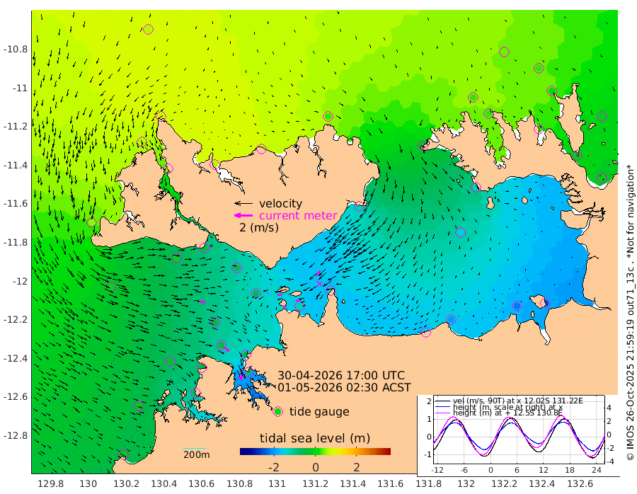 41cm/s -102T +4cm/s rms + 6cm/s 51T. Darwin_C1 52m 47cm/s -89T +4cm/s rms + 7cm/s -161T. Darwin_CW1 22m 6cm/s -105T +4cm/s rms + 8cm/s 61T. Darwin_CW2 34m 63cm/s -143T +3cm/s rms + 9cm/s 98T. Darwin_CW3 22m 43cm/s -87T +5cm/s rms + 7cm/s 88T. Darwin_C3 56m 3cm/s -95T +2cm/s rms + 9cm/s -126T. Darwin_CTbW 22m 61cm/s 97T +1cm/s rms + 1cm/s -47T. DARBGF 30m 69cm/s 127T +4cm/s rms + 3cm/s 80T. NRSDAR 19m 62cm Goodrich Bank -8cm Point Jenny -6cm Native Point -26cm Fish Reef -24cm Tapa Bay 51cm Point Fawcett (Offshore) -60cm Burge Point -8cm Munkunuwa 1cm Beagle A -56cm Parsons Bank -51cm Fenton Patches -66cm Hancox Shoal Area -54cm Nightcliff -83cm Darwin -51cm Charles Point Patches -113cm Glyde Point -161cm Chambers Bay -191cm Point Stuart -124cm Cape Hotham -153cm Christine Reef -215cm West Alligator Head -249cm East Field Island -132cm Two Hills Bay -129cm Camp Point -30cm Medina Inlet South 53cm South Barlow Point 67cm St. Asaph Bay 68cm Cape Van Dieman 62cm Snake Bay 56cm Cache Point 33cm Point Jahleel (Off) -21cm Cape Don 24cm Port Essington 30cm Smith Point - West 24cm NW Peacock Island 41cm North Of Jones Shoal 13cm Peacock Island -4cm Point David 25cm D'urville Point -9cm Copeland Island -3cm One Tree Point