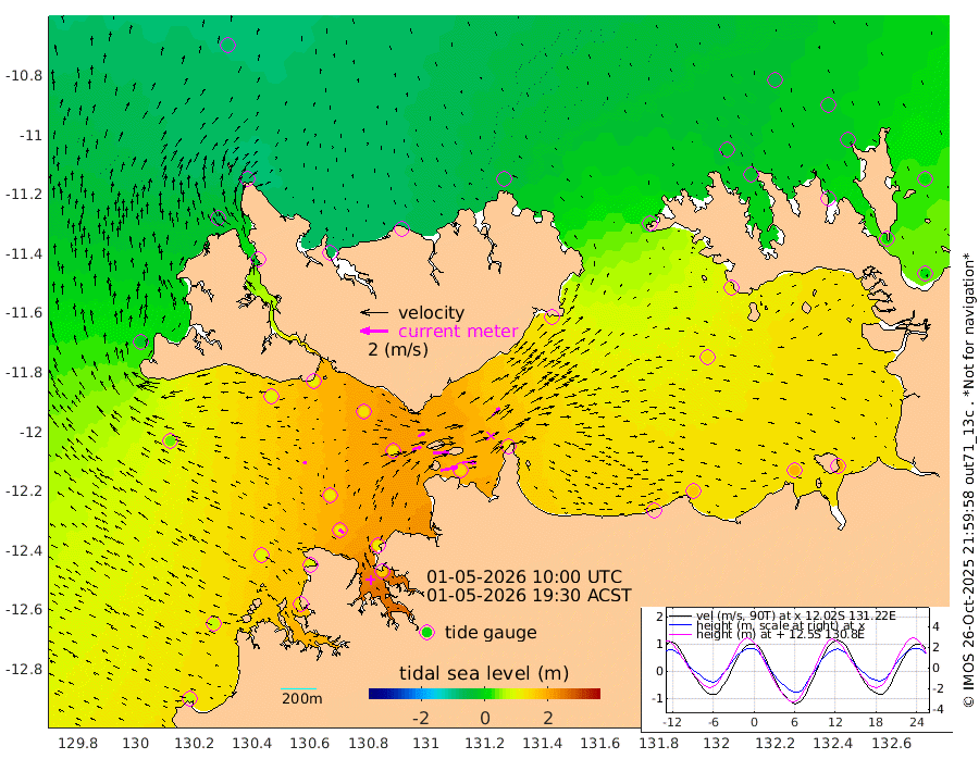 120cm/s 79T +4cm/s rms + 6cm/s 51T. Darwin_C1 52m 100cm/s 92T +4cm/s rms + 7cm/s -161T. Darwin_CW1 22m 66cm/s 70T +4cm/s rms + 8cm/s 61T. Darwin_CW2 34m 80cm/s 45T +3cm/s rms + 9cm/s 98T. Darwin_CW3 22m 114cm/s 90T +5cm/s rms + 7cm/s 88T. Darwin_C3 56m 53cm/s 65T +2cm/s rms + 9cm/s -126T. Darwin_CTbW 22m 27cm/s -73T +1cm/s rms + 1cm/s -47T. DARBGF 30m 41cm/s -48T +4cm/s rms + 3cm/s 80T. NRSDAR 19m -75cm Goodrich Bank 70cm Point Jenny 68cm Native Point 94cm Fish Reef 97cm Tapa Bay -20cm Point Fawcett (Offshore) 126cm Burge Point 91cm Munkunuwa 43cm Beagle A 134cm Parsons Bank 113cm Fenton Patches 133cm Hancox Shoal Area 124cm Nightcliff 161cm Darwin 123cm Charles Point Patches 142cm Glyde Point 147cm Chambers Bay 168cm Point Stuart 134cm Cape Hotham 129cm Christine Reef 185cm West Alligator Head 194cm East Field Island 123cm Two Hills Bay 119cm Camp Point 103cm Medina Inlet South -25cm South Barlow Point -55cm St. Asaph Bay -74cm Cape Van Dieman -66cm Snake Bay -68cm Cache Point -40cm Point Jahleel (Off) 28cm Cape Don -19cm Port Essington -27cm Smith Point - West -24cm NW Peacock Island -48cm North Of Jones Shoal -14cm Peacock Island 16cm Point David -18cm D'urville Point 22cm Copeland Island 12cm One Tree Point