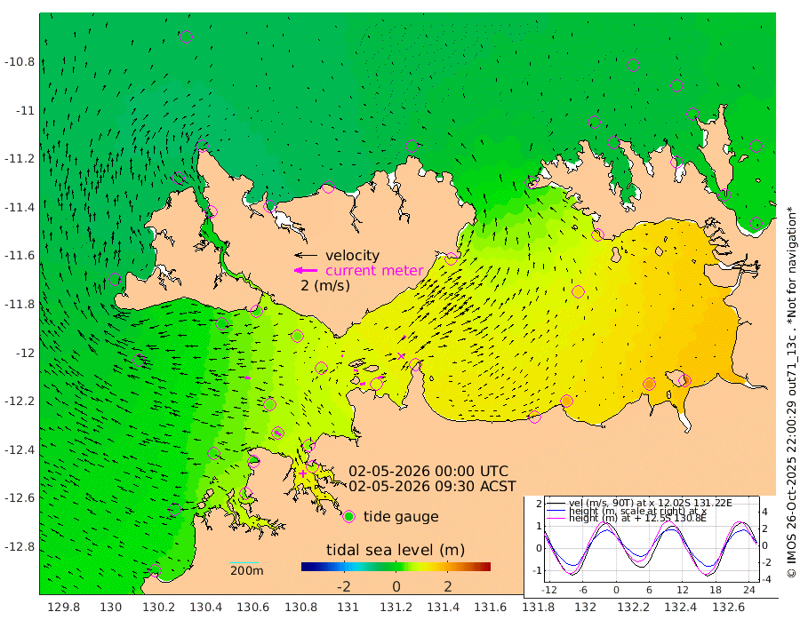 40cm/s 81T +4cm/s rms + 6cm/s 51T. Darwin_C1 52m 50cm/s 88T +4cm/s rms + 7cm/s -161T. Darwin_CW1 22m 5cm/s 82T +4cm/s rms + 8cm/s 61T. Darwin_CW2 34m 43cm/s 38T +3cm/s rms + 9cm/s 98T. Darwin_CW3 22m 39cm/s 95T +5cm/s rms + 7cm/s 88T. Darwin_C3 56m 12cm/s 72T +2cm/s rms + 9cm/s -126T. Darwin_CTbW 22m 49cm/s -82T +1cm/s rms + 1cm/s -47T. DARBGF 30m 61cm/s -53T +4cm/s rms + 3cm/s 80T. NRSDAR 19m -44cm Goodrich Bank 11cm Point Jenny 8cm Native Point 24cm Fish Reef 25cm Tapa Bay -27cm Point Fawcett (Offshore) 44cm Burge Point 8cm Munkunuwa -2cm Beagle A 41cm Parsons Bank 36cm Fenton Patches 57cm Hancox Shoal Area 48cm Nightcliff 64cm Darwin 41cm Charles Point Patches 98cm Glyde Point 156cm Chambers Bay 181cm Point Stuart 117cm Cape Hotham 145cm Christine Reef 206cm West Alligator Head 236cm East Field Island 128cm Two Hills Bay 117cm Camp Point 25cm Medina Inlet South -43cm South Barlow Point -45cm St. Asaph Bay -50cm Cape Van Dieman -48cm Snake Bay -36cm Cache Point -18cm Point Jahleel (Off) 23cm Cape Don -19cm Port Essington -23cm Smith Point - West -20cm NW Peacock Island -25cm North Of Jones Shoal -9cm Peacock Island -2cm Point David -23cm D'urville Point 1cm Copeland Island 0cm One Tree Point