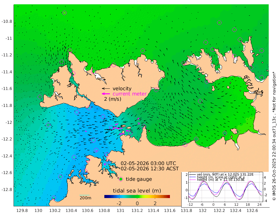 145cm/s -102T +4cm/s rms + 6cm/s 51T. Darwin_C1 52m 121cm/s -89T +4cm/s rms + 7cm/s -161T. Darwin_CW1 22m 96cm/s -107T +4cm/s rms + 8cm/s 61T. Darwin_CW2 34m 59cm/s -131T +3cm/s rms + 9cm/s 98T. Darwin_CW3 22m 142cm/s -91T +5cm/s rms + 7cm/s 88T. Darwin_C3 56m 79cm/s -115T +2cm/s rms + 9cm/s -126T. Darwin_CTbW 22m 40cm/s -94T +1cm/s rms + 1cm/s -47T. DARBGF 30m 35cm/s -71T +4cm/s rms + 3cm/s 80T. NRSDAR 19m 32cm Goodrich Bank -128cm Point Jenny -127cm Native Point -144cm Fish Reef -154cm Tapa Bay -52cm Point Fawcett (Offshore) -157cm Burge Point -160cm Munkunuwa -98cm Beagle A -169cm Parsons Bank -149cm Fenton Patches -159cm Hancox Shoal Area -164cm Nightcliff -182cm Darwin -161cm Charles Point Patches -109cm Glyde Point -57cm Chambers Bay -48cm Point Stuart -80cm Cape Hotham -41cm Christine Reef -49cm West Alligator Head -23cm East Field Island -49cm Two Hills Bay -46cm Camp Point -154cm Medina Inlet South -43cm South Barlow Point -12cm St. Asaph Bay 25cm Cape Van Dieman 20cm Snake Bay 28cm Cache Point 11cm Point Jahleel (Off) -27cm Cape Don -3cm Port Essington -2cm Smith Point - West 3cm NW Peacock Island 19cm North Of Jones Shoal 4cm Peacock Island -17cm Point David -5cm D'urville Point -21cm Copeland Island -13cm One Tree Point