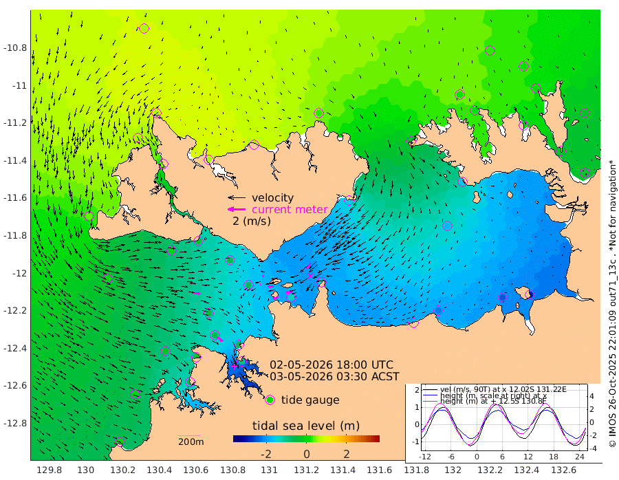 66cm/s -101T +4cm/s rms + 6cm/s 51T. Darwin_C1 52m 67cm/s -91T +4cm/s rms + 7cm/s -161T. Darwin_CW1 22m 6cm/s -96T +4cm/s rms + 8cm/s 61T. Darwin_CW2 34m 80cm/s -141T +3cm/s rms + 9cm/s 98T. Darwin_CW3 22m 56cm/s -88T +5cm/s rms + 7cm/s 88T. Darwin_C3 56m 13cm/s -111T +2cm/s rms + 9cm/s -126T. Darwin_CTbW 22m 65cm/s 97T +1cm/s rms + 1cm/s -47T. DARBGF 30m 75cm/s 128T +4cm/s rms + 3cm/s 80T. NRSDAR 19m 62cm Goodrich Bank -9cm Point Jenny -6cm Native Point -32cm Fish Reef -28cm Tapa Bay 44cm Point Fawcett (Offshore) -59cm Burge Point -8cm Munkunuwa 6cm Beagle A -62cm Parsons Bank -47cm Fenton Patches -73cm Hancox Shoal Area -60cm Nightcliff -92cm Darwin -58cm Charles Point Patches -128cm Glyde Point -186cm Chambers Bay -221cm Point Stuart -145cm Cape Hotham -169cm Christine Reef -247cm West Alligator Head -282cm East Field Island -158cm Two Hills Bay -146cm Camp Point -36cm Medina Inlet South 53cm South Barlow Point 67cm St. Asaph Bay 67cm Cape Van Dieman 58cm Snake Bay 51cm Cache Point 26cm Point Jahleel (Off) -36cm Cape Don 13cm Port Essington 21cm Smith Point - West 14cm NW Peacock Island 28cm North Of Jones Shoal 7cm Peacock Island -23cm Point David 14cm D'urville Point -28cm Copeland Island -24cm One Tree Point