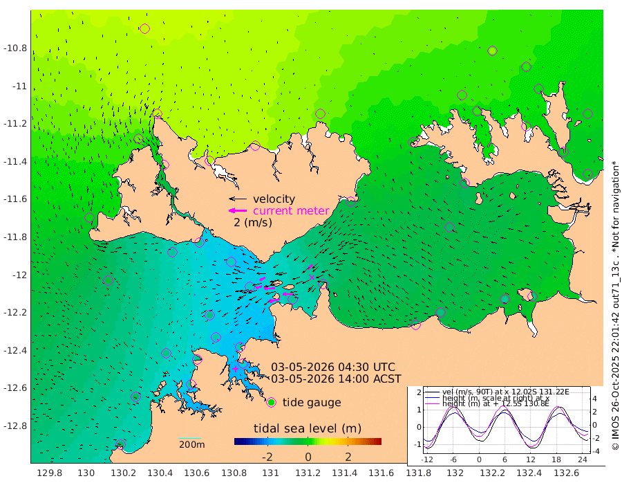 136cm/s -101T +4cm/s rms + 6cm/s 51T. Darwin_C1 52m 120cm/s -91T +4cm/s rms + 7cm/s -161T. Darwin_CW1 22m 70cm/s -106T +4cm/s rms + 8cm/s 61T. Darwin_CW2 34m 68cm/s -134T +3cm/s rms + 9cm/s 98T. Darwin_CW3 22m 124cm/s -91T +5cm/s rms + 7cm/s 88T. Darwin_C3 56m 68cm/s -116T +2cm/s rms + 9cm/s -126T. Darwin_CTbW 22m 7cm/s -141T +1cm/s rms + 1cm/s -47T. DARBGF 30m 9cm/s -155T +4cm/s rms + 3cm/s 80T. NRSDAR 19m 70cm Goodrich Bank -75cm Point Jenny -72cm Native Point -93cm Fish Reef -102cm Tapa Bay 3cm Point Fawcett (Offshore) -110cm Burge Point -105cm Munkunuwa -43cm Beagle A -126cm Parsons Bank -101cm Fenton Patches -126cm Hancox Shoal Area -123cm Nightcliff -142cm Darwin -113cm Charles Point Patches -104cm Glyde Point -95cm Chambers Bay -99cm Point Stuart -91cm Cape Hotham -78cm Christine Reef -111cm West Alligator Head -103cm East Field Island -75cm Two Hills Bay -65cm Camp Point -103cm Medina Inlet South 13cm South Barlow Point 38cm St. Asaph Bay 68cm Cape Van Dieman 63cm Snake Bay 65cm Cache Point 41cm Point Jahleel (Off) -9cm Cape Don 27cm Port Essington 28cm Smith Point - West 31cm NW Peacock Island 48cm North Of Jones Shoal 14cm Peacock Island 5cm Point David 24cm D'urville Point -1cm Copeland Island 8cm One Tree Point