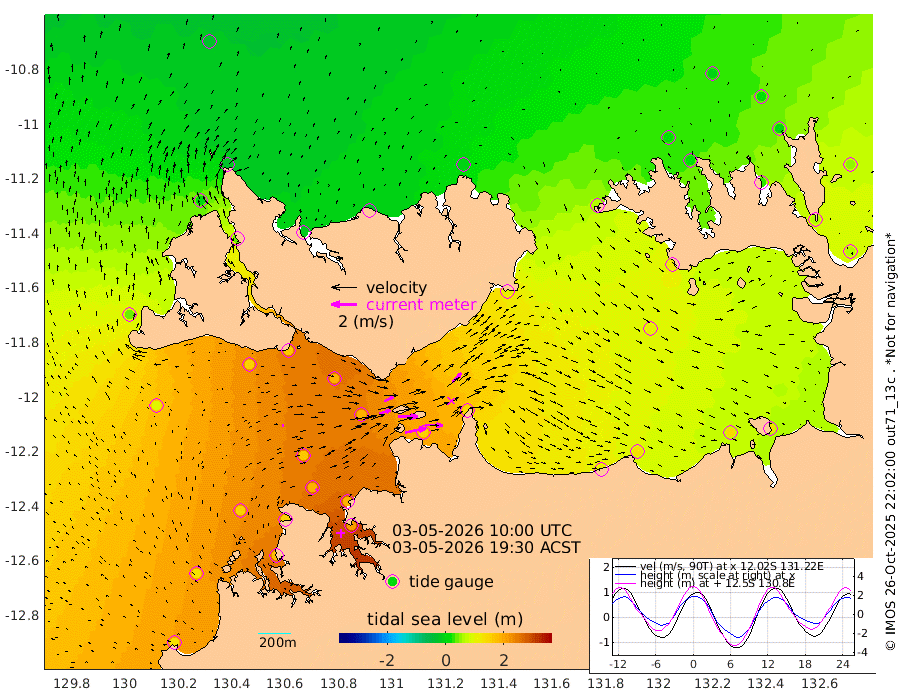 167cm/s 78T +4cm/s rms + 6cm/s 51T. Darwin_C1 52m 136cm/s 92T +4cm/s rms + 7cm/s -161T. Darwin_CW1 22m 90cm/s 73T +4cm/s rms + 8cm/s 61T. Darwin_CW2 34m 100cm/s 43T +3cm/s rms + 9cm/s 98T. Darwin_CW3 22m 154cm/s 89T +5cm/s rms + 7cm/s 88T. Darwin_C3 56m 77cm/s 66T +2cm/s rms + 9cm/s -126T. Darwin_CTbW 22m 12cm/s 60T +1cm/s rms + 1cm/s -47T. DARBGF 30m 10cm/s 52T +4cm/s rms + 3cm/s 80T. NRSDAR 19m -34cm Goodrich Bank 126cm Point Jenny 124cm Native Point 150cm Fish Reef 155cm Tapa Bay 42cm Point Fawcett (Offshore) 176cm Burge Point 149cm Munkunuwa 97cm Beagle A 188cm Parsons Bank 162cm Fenton Patches 181cm Hancox Shoal Area 184cm Nightcliff 214cm Darwin 182cm Charles Point Patches 157cm Glyde Point 123cm Chambers Bay 129cm Point Stuart 136cm Cape Hotham 107cm Christine Reef 136cm West Alligator Head 125cm East Field Island 113cm Two Hills Bay 109cm Camp Point 164cm Medina Inlet South 38cm South Barlow Point 0cm St. Asaph Bay -30cm Cape Van Dieman -15cm Snake Bay -26cm Cache Point -2cm Point Jahleel (Off) 59cm Cape Don 22cm Port Essington 17cm Smith Point - West 18cm NW Peacock Island 0cm North Of Jones Shoal 4cm Peacock Island 57cm Point David 27cm D'urville Point 61cm Copeland Island 55cm One Tree Point