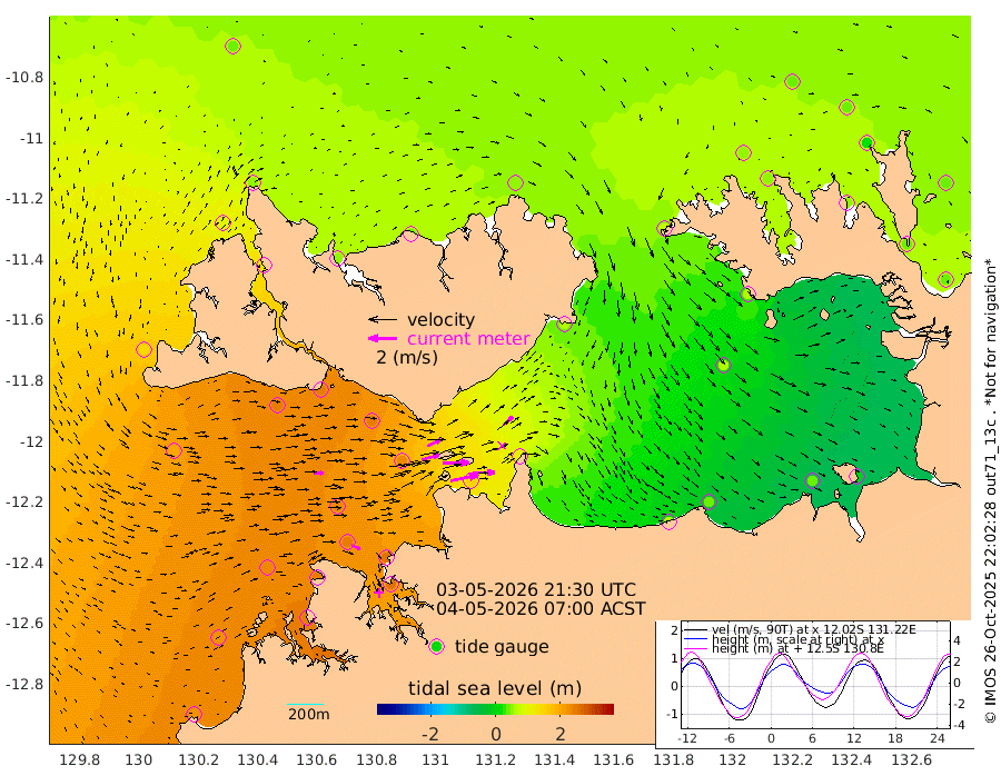 200cm/s 77T +4cm/s rms + 6cm/s 51T. Darwin_C1 52m 159cm/s 91T +4cm/s rms + 7cm/s -161T. Darwin_CW1 22m 127cm/s 74T +4cm/s rms + 8cm/s 61T. Darwin_CW2 34m 91cm/s 48T +3cm/s rms + 9cm/s 98T. Darwin_CW3 22m 188cm/s 89T +5cm/s rms + 7cm/s 88T. Darwin_C3 56m 105cm/s 65T +2cm/s rms + 9cm/s -126T. Darwin_CTbW 22m 68cm/s 86T +1cm/s rms + 1cm/s -47T. DARBGF 30m 66cm/s 113T +4cm/s rms + 3cm/s 80T. NRSDAR 19m 39cm Goodrich Bank 219cm Point Jenny 219cm Native Point 227cm Fish Reef 245cm Tapa Bay 145cm Point Fawcett (Offshore) 241cm Burge Point 243cm Munkunuwa 194cm Beagle A 239cm Parsons Bank 235cm Fenton Patches 232cm Hancox Shoal Area 253cm Nightcliff 257cm Darwin 247cm Charles Point Patches 149cm Glyde Point 66cm Chambers Bay 41cm Point Stuart 107cm Cape Hotham 62cm Christine Reef 39cm West Alligator Head -1cm East Field Island 65cm Two Hills Bay 66cm Camp Point 240cm Medina Inlet South 128cm South Barlow Point 100cm St. Asaph Bay 45cm Cape Van Dieman 51cm Snake Bay 42cm Cache Point 52cm Point Jahleel (Off) 71cm Cape Don 50cm Port Essington 56cm Smith Point - West 44cm NW Peacock Island 39cm North Of Jones Shoal 14cm Peacock Island 39cm Point David 51cm D'urville Point 39cm Copeland Island 41cm One Tree Point