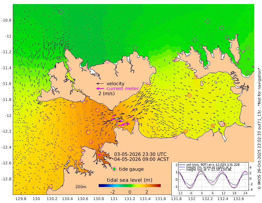 181cm/s 79T +4cm/s rms + 6cm/s 51T. Darwin_C1 52m 154cm/s 92T +4cm/s rms + 7cm/s -161T. Darwin_CW1 22m 101cm/s 71T +4cm/s rms + 8cm/s 61T. Darwin_CW2 34m 101cm/s 47T +3cm/s rms + 9cm/s 98T. Darwin_CW3 22m 171cm/s 90T +5cm/s rms + 7cm/s 88T. Darwin_C3 56m 88cm/s 66T +2cm/s rms + 9cm/s -126T. Darwin_CTbW 22m 10cm/s -4T +1cm/s rms + 1cm/s -47T. DARBGF 30m 24cm/s -37T +4cm/s rms + 3cm/s 80T. NRSDAR 19m -17cm Goodrich Bank 145cm Point Jenny 142cm Native Point 164cm Fish Reef 175cm Tapa Bay 67cm Point Fawcett (Offshore) 184cm Burge Point 157cm Munkunuwa 116cm Beagle A 185cm Parsons Bank 175cm Fenton Patches 193cm Hancox Shoal Area 198cm Nightcliff 218cm Darwin 191cm Charles Point Patches 180cm Glyde Point 179cm Chambers Bay 185cm Point Stuart 168cm Cape Hotham 162cm Christine Reef 205cm West Alligator Head 206cm East Field Island 154cm Two Hills Bay 142cm Camp Point 173cm Medina Inlet South 41cm South Barlow Point 21cm St. Asaph Bay -18cm Cape Van Dieman -11cm Snake Bay -7cm Cache Point 15cm Point Jahleel (Off) 66cm Cape Don 16cm Port Essington 16cm Smith Point - West 11cm NW Peacock Island 2cm North Of Jones Shoal 1cm Peacock Island 26cm Point David 14cm D'urville Point 29cm Copeland Island 29cm One Tree Point