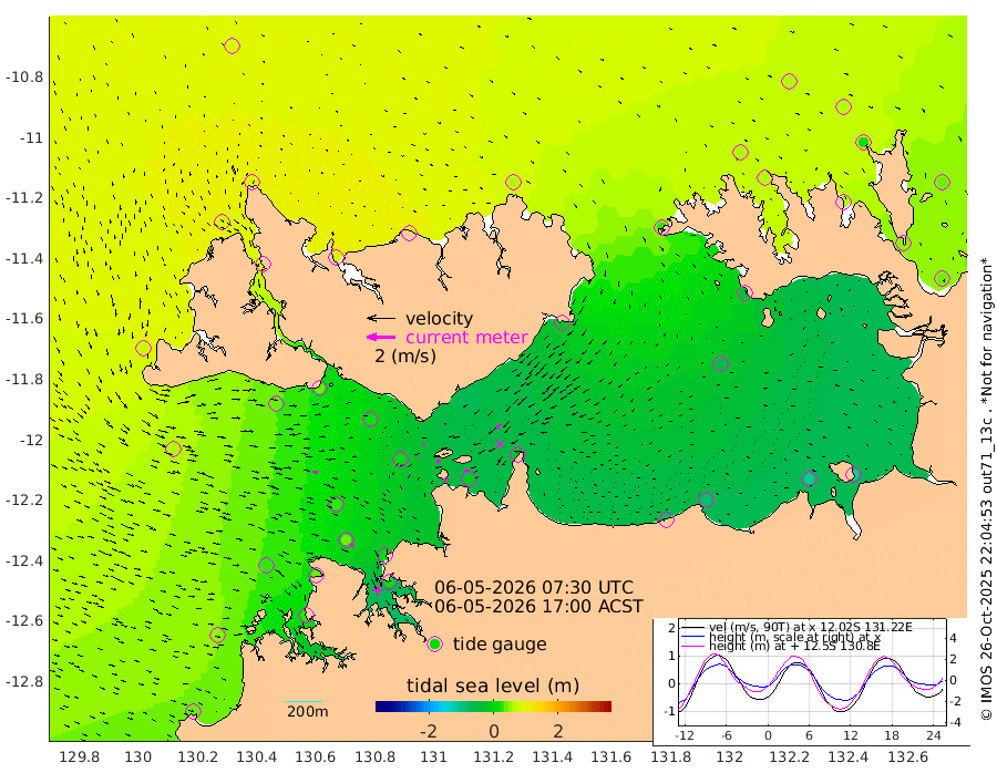 40cm/s -99T +4cm/s rms + 6cm/s 51T. Darwin_C1 52m 39cm/s -93T +4cm/s rms + 7cm/s -161T. Darwin_CW1 22m 5cm/s -106T +4cm/s rms + 8cm/s 61T. Darwin_CW2 34m 41cm/s -137T +3cm/s rms + 9cm/s 98T. Darwin_CW3 22m 30cm/s -90T +5cm/s rms + 7cm/s 88T. Darwin_C3 56m 14cm/s -115T +2cm/s rms + 9cm/s -126T. Darwin_CTbW 22m 33cm/s 97T +1cm/s rms + 1cm/s -47T. DARBGF 30m 35cm/s 131T +4cm/s rms + 3cm/s 80T. NRSDAR 19m 85cm Goodrich Bank 43cm Point Jenny 48cm Native Point 34cm Fish Reef 38cm Tapa Bay 73cm Point Fawcett (Offshore) 33cm Burge Point 38cm Munkunuwa 57cm Beagle A 20cm Parsons Bank 31cm Fenton Patches 9cm Hancox Shoal Area 13cm Nightcliff 14cm Darwin 35cm Charles Point Patches -17cm Glyde Point -74cm Chambers Bay -84cm Point Stuart -33cm Cape Hotham -61cm Christine Reef -103cm West Alligator Head -121cm East Field Island -47cm Two Hills Bay -30cm Camp Point 35cm Medina Inlet South 81cm South Barlow Point 83cm St. Asaph Bay 89cm Cape Van Dieman 90cm Snake Bay 80cm Cache Point 63cm Point Jahleel (Off) 29cm Cape Don 59cm Port Essington 57cm Smith Point - West 58cm NW Peacock Island 62cm North Of Jones Shoal 21cm Peacock Island 47cm Point David 57cm D'urville Point 40cm Copeland Island 44cm One Tree Point