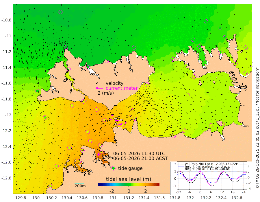 147cm/s 78T +4cm/s rms + 6cm/s 51T. Darwin_C1 52m 101cm/s 90T +4cm/s rms + 7cm/s -161T. Darwin_CW1 22m 58cm/s 74T +4cm/s rms + 8cm/s 61T. Darwin_CW2 34m 91cm/s 43T +3cm/s rms + 9cm/s 98T. Darwin_CW3 22m 99cm/s 89T +5cm/s rms + 7cm/s 88T. Darwin_C3 56m 73cm/s 65T +2cm/s rms + 9cm/s -126T. Darwin_CTbW 22m 4cm/s 12T +1cm/s rms + 1cm/s -47T. DARBGF 30m 9cm/s 13T +4cm/s rms + 3cm/s 80T. NRSDAR 19m -36cm Goodrich Bank 68cm Point Jenny 67cm Native Point 78cm Fish Reef 95cm Tapa Bay 9cm Point Fawcett (Offshore) 100cm Burge Point 87cm Munkunuwa 40cm Beagle A 122cm Parsons Bank 89cm Fenton Patches 123cm Hancox Shoal Area 122cm Nightcliff 136cm Darwin 110cm Charles Point Patches 103cm Glyde Point 89cm Chambers Bay 93cm Point Stuart 95cm Cape Hotham 77cm Christine Reef 99cm West Alligator Head 91cm East Field Island 82cm Two Hills Bay 77cm Camp Point 95cm Medina Inlet South 10cm South Barlow Point -17cm St. Asaph Bay -33cm Cape Van Dieman -18cm Snake Bay -31cm Cache Point -9cm Point Jahleel (Off) 37cm Cape Don 11cm Port Essington 9cm Smith Point - West 14cm NW Peacock Island -3cm North Of Jones Shoal 3cm Peacock Island 57cm Point David 21cm D'urville Point 61cm Copeland Island 50cm One Tree Point