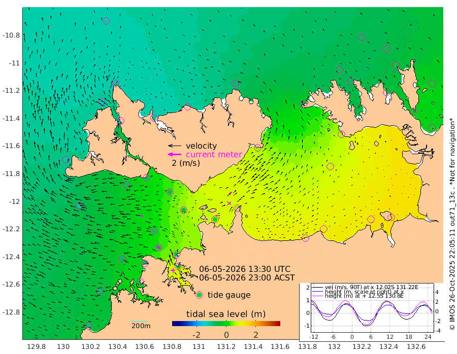 30cm/s 84T +4cm/s rms + 6cm/s 51T. Darwin_C1 52m 26cm/s 89T +4cm/s rms + 7cm/s -161T. Darwin_CW1 22m 5cm/s -57T +4cm/s rms + 8cm/s 61T. Darwin_CW2 34m 38cm/s 42T +3cm/s rms + 9cm/s 98T. Darwin_CW3 22m 12cm/s 97T +5cm/s rms + 7cm/s 88T. Darwin_C3 56m 10cm/s 66T +2cm/s rms + 9cm/s -126T. Darwin_CTbW 22m 53cm/s -86T +1cm/s rms + 1cm/s -47T. DARBGF 30m 65cm/s -55T +4cm/s rms + 3cm/s 80T. NRSDAR 19m -105cm Goodrich Bank -83cm Point Jenny -87cm Native Point -69cm Fish Reef -69cm Tapa Bay -109cm Point Fawcett (Offshore) -63cm Burge Point -76cm Munkunuwa -102cm Beagle A -38cm Parsons Bank -68cm Fenton Patches -25cm Hancox Shoal Area -38cm Nightcliff -29cm Darwin -57cm Charles Point Patches 20cm Glyde Point 91cm Chambers Bay 114cm Point Stuart 48cm Cape Hotham 68cm Christine Reef 133cm West Alligator Head 158cm East Field Island 67cm Two Hills Bay 49cm Camp Point -65cm Medina Inlet South -111cm South Barlow Point -118cm St. Asaph Bay -108cm Cape Van Dieman -100cm Snake Bay -98cm Cache Point -74cm Point Jahleel (Off) -26cm Cape Don -56cm Port Essington -60cm Smith Point - West -52cm NW Peacock Island -63cm North Of Jones Shoal -19cm Peacock Island -7cm Point David -49cm D'urville Point 1cm Copeland Island -11cm One Tree Point