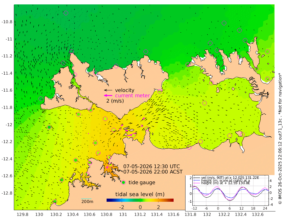 119cm/s 78T +4cm/s rms + 6cm/s 51T. Darwin_C1 52m 70cm/s 91T +4cm/s rms + 7cm/s -161T. Darwin_CW1 22m 38cm/s 73T +4cm/s rms + 8cm/s 61T. Darwin_CW2 34m 78cm/s 42T +3cm/s rms + 9cm/s 98T. Darwin_CW3 22m 66cm/s 90T +5cm/s rms + 7cm/s 88T. Darwin_C3 56m 59cm/s 66T +2cm/s rms + 9cm/s -126T. Darwin_CTbW 22m 12cm/s -76T +1cm/s rms + 1cm/s -47T. DARBGF 30m 17cm/s -36T +4cm/s rms + 3cm/s 80T. NRSDAR 19m -51cm Goodrich Bank 25cm Point Jenny 23cm Native Point 31cm Fish Reef 48cm Tapa Bay -23cm Point Fawcett (Offshore) 47cm Burge Point 38cm Munkunuwa -2cm Beagle A 72cm Parsons Bank 40cm Fenton Patches 79cm Hancox Shoal Area 73cm Nightcliff 82cm Darwin 57cm Charles Point Patches 73cm Glyde Point 83cm Chambers Bay 90cm Point Stuart 76cm Cape Hotham 70cm Christine Reef 99cm West Alligator Head 98cm East Field Island 72cm Two Hills Bay 64cm Camp Point 45cm Medina Inlet South -23cm South Barlow Point -42cm St. Asaph Bay -49cm Cape Van Dieman -36cm Snake Bay -45cm Cache Point -23cm Point Jahleel (Off) 19cm Cape Don -6cm Port Essington -6cm Smith Point - West -1cm NW Peacock Island -17cm North Of Jones Shoal -2cm Peacock Island 44cm Point David 5cm D'urville Point 49cm Copeland Island 35cm One Tree Point