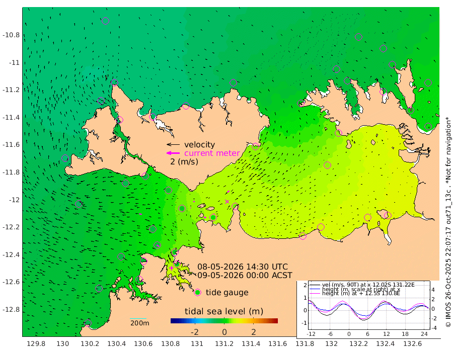 30cm/s 81T +4cm/s rms + 6cm/s 51T. Darwin_C1 52m 6cm/s 85T +4cm/s rms + 7cm/s -161T. Darwin_CW1 22m 4cm/s -60T +4cm/s rms + 8cm/s 61T. Darwin_CW2 34m 32cm/s 41T +3cm/s rms + 9cm/s 98T. Darwin_CW3 22m 2cm/s -112T +5cm/s rms + 7cm/s 88T. Darwin_C3 56m 17cm/s 65T +2cm/s rms + 9cm/s -126T. Darwin_CTbW 22m 34cm/s -87T +1cm/s rms + 1cm/s -47T. DARBGF 30m 41cm/s -55T +4cm/s rms + 3cm/s 80T. NRSDAR 19m -80cm Goodrich Bank -57cm Point Jenny -60cm Native Point -53cm Fish Reef -45cm Tapa Bay -80cm Point Fawcett (Offshore) -51cm Burge Point -57cm Munkunuwa -74cm Beagle A -28cm Parsons Bank -49cm Fenton Patches -12cm Hancox Shoal Area -20cm Nightcliff -24cm Darwin -44cm Charles Point Patches 14cm Glyde Point 71cm Chambers Bay 81cm Point Stuart 35cm Cape Hotham 50cm Christine Reef 94cm West Alligator Head 110cm East Field Island 48cm Two Hills Bay 35cm Camp Point -50cm Medina Inlet South -83cm South Barlow Point -87cm St. Asaph Bay -80cm Cape Van Dieman -75cm Snake Bay -73cm Cache Point -54cm Point Jahleel (Off) -19cm Cape Don -42cm Port Essington -42cm Smith Point - West -35cm NW Peacock Island -46cm North Of Jones Shoal -13cm Peacock Island 5cm Point David -32cm D'urville Point 12cm Copeland Island -3cm One Tree Point