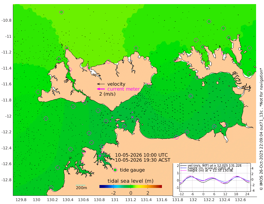 41cm/s -101T +4cm/s rms + 6cm/s 51T. Darwin_C1 52m 11cm/s -90T +4cm/s rms + 7cm/s -161T. Darwin_CW1 22m 21cm/s -110T +4cm/s rms + 8cm/s 61T. Darwin_CW2 34m 25cm/s -136T +3cm/s rms + 9cm/s 98T. Darwin_CW3 22m 22cm/s -91T +5cm/s rms + 7cm/s 88T. Darwin_C3 56m 30cm/s -115T +2cm/s rms + 9cm/s -126T. Darwin_CTbW 22m 5cm/s -107T +1cm/s rms + 1cm/s -47T. DARBGF 30m 4cm/s -95T +4cm/s rms + 3cm/s 80T. NRSDAR 19m 34cm Goodrich Bank -28cm Point Jenny -26cm Native Point -30cm Fish Reef -31cm Tapa Bay 3cm Point Fawcett (Offshore) -34cm Burge Point -25cm Munkunuwa -25cm Beagle A -32cm Parsons Bank -42cm Fenton Patches -39cm Hancox Shoal Area -57cm Nightcliff -35cm Darwin -20cm Charles Point Patches -36cm Glyde Point -58cm Chambers Bay -51cm Point Stuart -40cm Cape Hotham -49cm Christine Reef -60cm West Alligator Head -63cm East Field Island -38cm Two Hills Bay -30cm Camp Point -27cm Medina Inlet South 13cm South Barlow Point 17cm St. Asaph Bay 33cm Cape Van Dieman 32cm Snake Bay 28cm Cache Point 18cm Point Jahleel (Off) 1cm Cape Don 24cm Port Essington 17cm Smith Point - West 21cm NW Peacock Island 21cm North Of Jones Shoal 7cm Peacock Island 17cm Point David 19cm D'urville Point 14cm Copeland Island 16cm One Tree Point