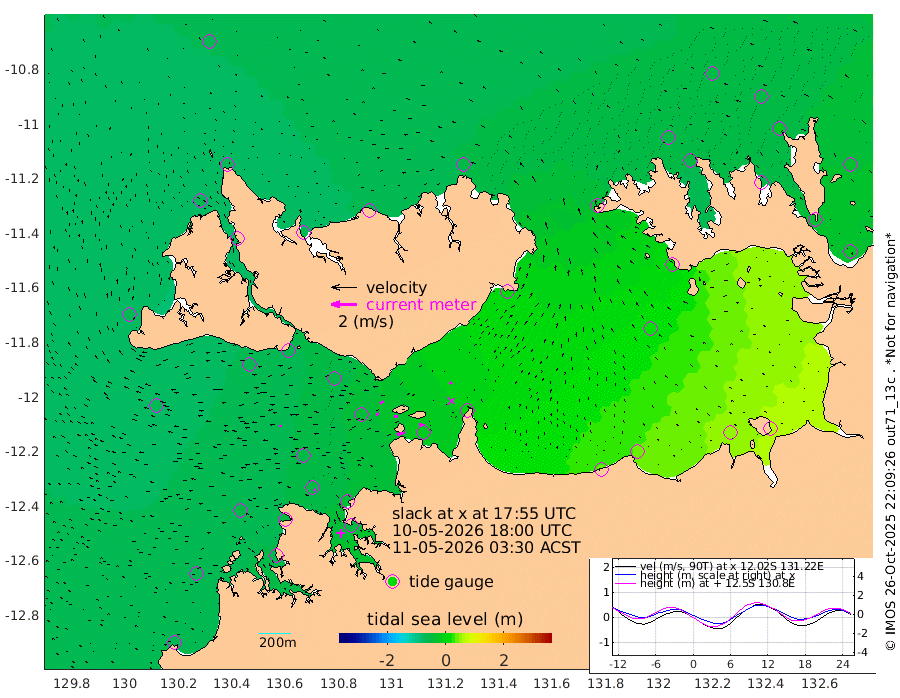 66cm/s -103T +4cm/s rms + 6cm/s 51T. Darwin_C1 52m 41cm/s -89T +4cm/s rms + 7cm/s -161T. Darwin_CW1 22m 22cm/s -108T +4cm/s rms + 8cm/s 61T. Darwin_CW2 34m 21cm/s -112T +3cm/s rms + 9cm/s 98T. Darwin_CW3 22m 28cm/s -91T +5cm/s rms + 7cm/s 88T. Darwin_C3 56m 35cm/s -116T +2cm/s rms + 9cm/s -126T. Darwin_CTbW 22m 20cm/s -91T +1cm/s rms + 1cm/s -47T. DARBGF 30m 17cm/s -63T +4cm/s rms + 3cm/s 80T. NRSDAR 19m -62cm Goodrich Bank -56cm Point Jenny -59cm Native Point -51cm Fish Reef -51cm Tapa Bay -62cm Point Fawcett (Offshore) -56cm Burge Point -61cm Munkunuwa -58cm Beagle A -52cm Parsons Bank -48cm Fenton Patches -36cm Hancox Shoal Area -37cm Nightcliff -46cm Darwin -55cm Charles Point Patches -12cm Glyde Point 37cm Chambers Bay 40cm Point Stuart 7cm Cape Hotham 17cm Christine Reef 49cm West Alligator Head 67cm East Field Island 13cm Two Hills Bay 10cm Camp Point -57cm Medina Inlet South -72cm South Barlow Point -65cm St. Asaph Bay -63cm Cape Van Dieman -64cm Snake Bay -58cm Cache Point -48cm Point Jahleel (Off) -35cm Cape Don -48cm Port Essington -48cm Smith Point - West -45cm NW Peacock Island -45cm North Of Jones Shoal -15cm Peacock Island -27cm Point David -45cm D'urville Point -22cm Copeland Island -31cm One Tree Point