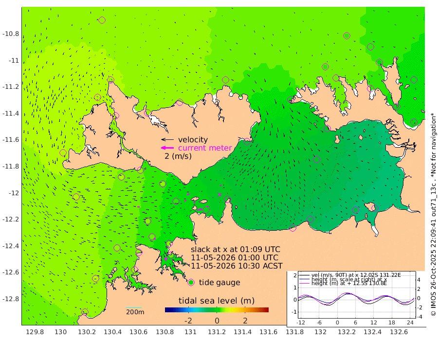 72cm/s 78T +4cm/s rms + 6cm/s 51T. Darwin_C1 52m 31cm/s 92T +4cm/s rms + 7cm/s -161T. Darwin_CW1 22m 26cm/s 72T +4cm/s rms + 8cm/s 61T. Darwin_CW2 34m 19cm/s 67T +3cm/s rms + 9cm/s 98T. Darwin_CW3 22m 24cm/s 89T +5cm/s rms + 7cm/s 88T. Darwin_C3 56m 43cm/s 64T +2cm/s rms + 9cm/s -126T. Darwin_CTbW 22m 32cm/s 91T +1cm/s rms + 1cm/s -47T. DARBGF 30m 32cm/s 119T +4cm/s rms + 3cm/s 80T. NRSDAR 19m 45cm Goodrich Bank 54cm Point Jenny 56cm Native Point 51cm Fish Reef 48cm Tapa Bay 57cm Point Fawcett (Offshore) 53cm Burge Point 63cm Munkunuwa 62cm Beagle A 49cm Parsons Bank 52cm Fenton Patches 33cm Hancox Shoal Area 46cm Nightcliff 36cm Darwin 38cm Charles Point Patches 1cm Glyde Point -43cm Chambers Bay -49cm Point Stuart -11cm Cape Hotham -24cm Christine Reef -56cm West Alligator Head -77cm East Field Island -20cm Two Hills Bay -26cm Camp Point 52cm Medina Inlet South 64cm South Barlow Point 58cm St. Asaph Bay 48cm Cape Van Dieman 50cm Snake Bay 44cm Cache Point 38cm Point Jahleel (Off) 21cm Cape Don 29cm Port Essington 36cm Smith Point - West 31cm NW Peacock Island 33cm North Of Jones Shoal 11cm Peacock Island 10cm Point David 32cm D'urville Point 7cm Copeland Island 14cm One Tree Point
