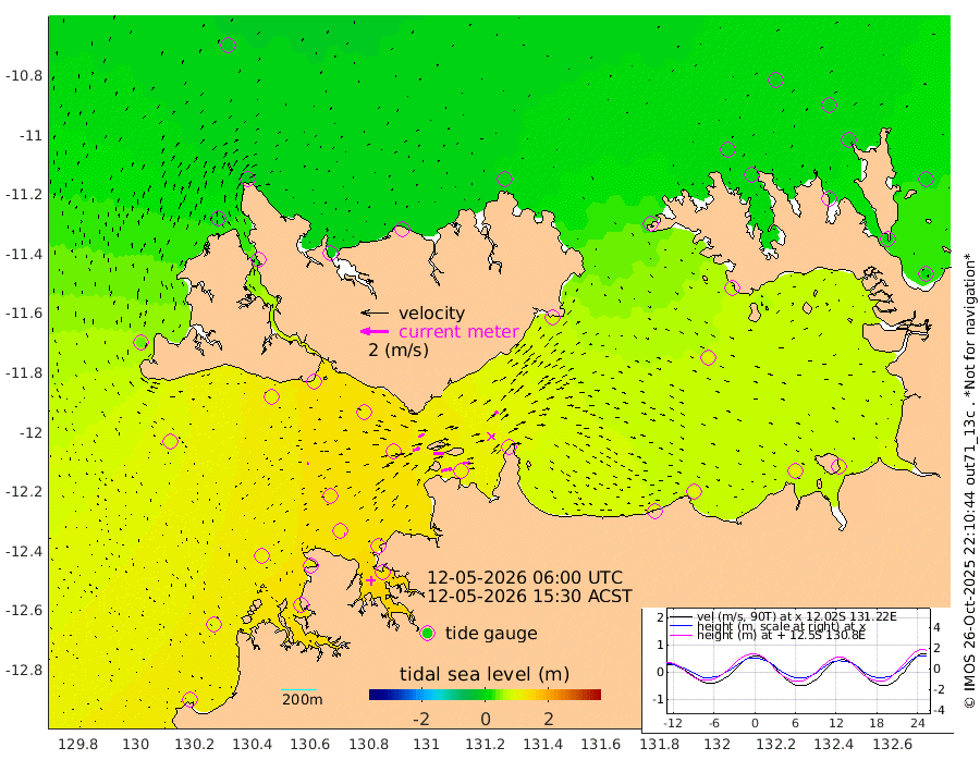 77cm/s 77T +4cm/s rms + 6cm/s 51T. Darwin_C1 52m 53cm/s 92T +4cm/s rms + 7cm/s -161T. Darwin_CW1 22m 52cm/s 73T +4cm/s rms + 8cm/s 61T. Darwin_CW2 34m 49cm/s 45T +3cm/s rms + 9cm/s 98T. Darwin_CW3 22m 76cm/s 89T +5cm/s rms + 7cm/s 88T. Darwin_C3 56m 45cm/s 66T +2cm/s rms + 9cm/s -126T. Darwin_CTbW 22m 9cm/s 62T +1cm/s rms + 1cm/s -47T. DARBGF 30m 6cm/s 68T +4cm/s rms + 3cm/s 80T. NRSDAR 19m -13cm Goodrich Bank 101cm Point Jenny 100cm Native Point 105cm Fish Reef 112cm Tapa Bay 39cm Point Fawcett (Offshore) 128cm Burge Point 98cm Munkunuwa 88cm Beagle A 114cm Parsons Bank 124cm Fenton Patches 116cm Hancox Shoal Area 134cm Nightcliff 134cm Darwin 116cm Charles Point Patches 108cm Glyde Point 103cm Chambers Bay 96cm Point Stuart 92cm Cape Hotham 95cm Christine Reef 104cm West Alligator Head 106cm East Field Island 79cm Two Hills Bay 87cm Camp Point 110cm Medina Inlet South 29cm South Barlow Point 12cm St. Asaph Bay -12cm Cape Van Dieman -8cm Snake Bay -9cm Cache Point 2cm Point Jahleel (Off) 37cm Cape Don 3cm Port Essington 1cm Smith Point - West -1cm NW Peacock Island -6cm North Of Jones Shoal -2cm Peacock Island 8cm Point David 1cm D'urville Point 9cm Copeland Island 10cm One Tree Point