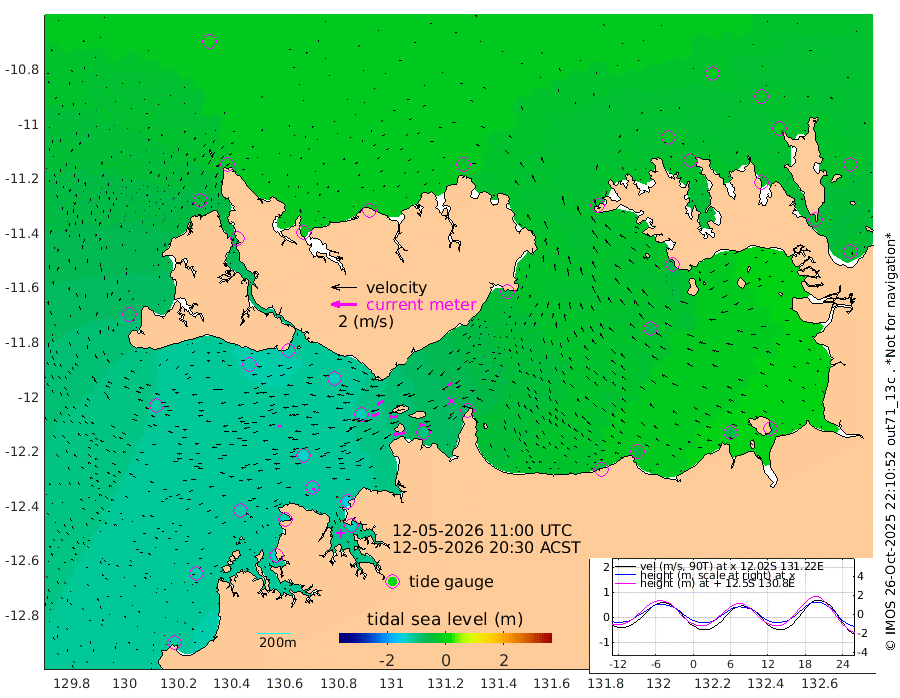 86cm/s -102T +4cm/s rms + 6cm/s 51T. Darwin_C1 52m 41cm/s -89T +4cm/s rms + 7cm/s -161T. Darwin_CW1 22m 56cm/s -108T +4cm/s rms + 8cm/s 61T. Darwin_CW2 34m 36cm/s -131T +3cm/s rms + 9cm/s 98T. Darwin_CW3 22m 64cm/s -91T +5cm/s rms + 7cm/s 88T. Darwin_C3 56m 56cm/s -116T +2cm/s rms + 9cm/s -126T. Darwin_CTbW 22m 33cm/s -93T +1cm/s rms + 1cm/s -47T. DARBGF 30m 28cm/s -63T +4cm/s rms + 3cm/s 80T. NRSDAR 19m -11cm Goodrich Bank -122cm Point Jenny -122cm Native Point -123cm Fish Reef -131cm Tapa Bay -70cm Point Fawcett (Offshore) -135cm Burge Point -119cm Munkunuwa -118cm Beagle A -126cm Parsons Bank -142cm Fenton Patches -128cm Hancox Shoal Area -150cm Nightcliff -132cm Darwin -120cm Charles Point Patches -93cm Glyde Point -70cm Chambers Bay -55cm Point Stuart -80cm Cape Hotham -66cm Christine Reef -58cm West Alligator Head -46cm East Field Island -59cm Two Hills Bay -57cm Camp Point -120cm Medina Inlet South -58cm South Barlow Point -44cm St. Asaph Bay -15cm Cape Van Dieman -18cm Snake Bay -18cm Cache Point -26cm Point Jahleel (Off) -42cm Cape Don -20cm Port Essington -28cm Smith Point - West -23cm NW Peacock Island -15cm North Of Jones Shoal -6cm Peacock Island -27cm Point David -28cm D'urville Point -29cm Copeland Island -24cm One Tree Point