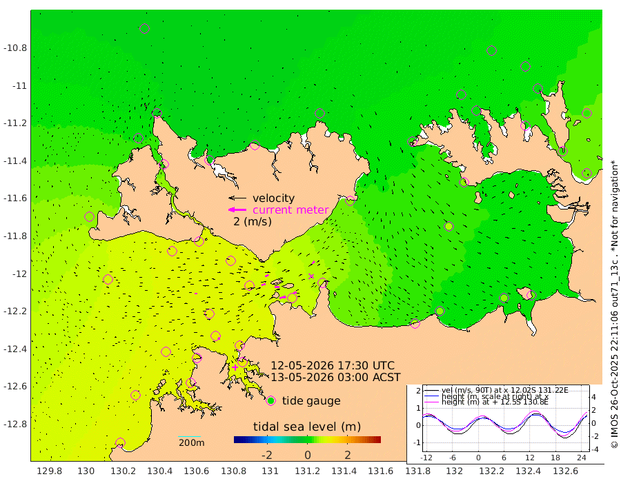 71cm/s 77T +4cm/s rms + 6cm/s 51T. Darwin_C1 52m 35cm/s 87T +4cm/s rms + 7cm/s -161T. Darwin_CW1 22m 44cm/s 74T +4cm/s rms + 8cm/s 61T. Darwin_CW2 34m 35cm/s 46T +3cm/s rms + 9cm/s 98T. Darwin_CW3 22m 54cm/s 88T +5cm/s rms + 7cm/s 88T. Darwin_C3 56m 42cm/s 64T +2cm/s rms + 9cm/s -126T. Darwin_CTbW 22m 25cm/s 87T +1cm/s rms + 1cm/s -47T. DARBGF 30m 24cm/s 113T +4cm/s rms + 3cm/s 80T. NRSDAR 19m -8cm Goodrich Bank 102cm Point Jenny 100cm Native Point 97cm Fish Reef 114cm Tapa Bay 47cm Point Fawcett (Offshore) 107cm Burge Point 95cm Munkunuwa 84cm Beagle A 108cm Parsons Bank 112cm Fenton Patches 117cm Hancox Shoal Area 125cm Nightcliff 113cm Darwin 106cm Charles Point Patches 81cm Glyde Point 71cm Chambers Bay 52cm Point Stuart 68cm Cape Hotham 60cm Christine Reef 53cm West Alligator Head 42cm East Field Island 50cm Two Hills Bay 52cm Camp Point 96cm Medina Inlet South 32cm South Barlow Point 20cm St. Asaph Bay -3cm Cape Van Dieman -5cm Snake Bay 0cm Cache Point 9cm Point Jahleel (Off) 32cm Cape Don 13cm Port Essington 19cm Smith Point - West 17cm NW Peacock Island 4cm North Of Jones Shoal 3cm Peacock Island 33cm Point David 22cm D'urville Point 37cm Copeland Island 25cm One Tree Point