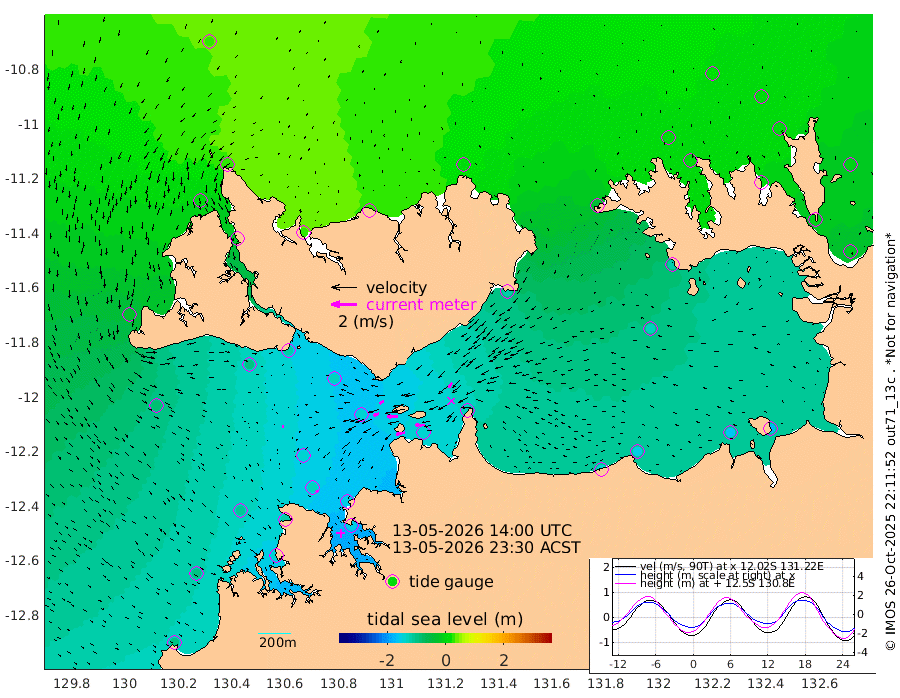 73cm/s -101T +4cm/s rms + 6cm/s 51T. Darwin_C1 52m 70cm/s -92T +4cm/s rms + 7cm/s -161T. Darwin_CW1 22m 44cm/s -106T +4cm/s rms + 8cm/s 61T. Darwin_CW2 34m 50cm/s -140T +3cm/s rms + 9cm/s 98T. Darwin_CW3 22m 80cm/s -90T +5cm/s rms + 7cm/s 88T. Darwin_C3 56m 39cm/s -115T +2cm/s rms + 9cm/s -126T. Darwin_CTbW 22m 13cm/s 120T +1cm/s rms + 1cm/s -47T. DARBGF 30m 18cm/s 139T +4cm/s rms + 3cm/s 80T. NRSDAR 19m 30cm Goodrich Bank -96cm Point Jenny -95cm Native Point -109cm Fish Reef -118cm Tapa Bay -23cm Point Fawcett (Offshore) -138cm Burge Point -98cm Munkunuwa -86cm Beagle A -126cm Parsons Bank -138cm Fenton Patches -136cm Hancox Shoal Area -151cm Nightcliff -157cm Darwin -130cm Charles Point Patches -138cm Glyde Point -143cm Chambers Bay -147cm Point Stuart -130cm Cape Hotham -130cm Christine Reef -163cm West Alligator Head -175cm East Field Island -114cm Two Hills Bay -120cm Camp Point -115cm Medina Inlet South -13cm South Barlow Point 5cm St. Asaph Bay 31cm Cape Van Dieman 23cm Snake Bay 25cm Cache Point 5cm Point Jahleel (Off) -35cm Cape Don 8cm Port Essington 9cm Smith Point - West 9cm NW Peacock Island 18cm North Of Jones Shoal 5cm Peacock Island -9cm Point David 8cm D'urville Point -12cm Copeland Island -8cm One Tree Point